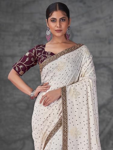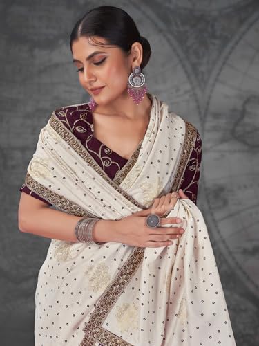 AKHILAM Women's Multicolor Tussar Silk Bandhani PrintedSaree With Unstitched Blouse Piece (HONOR1001_SS_Parent)