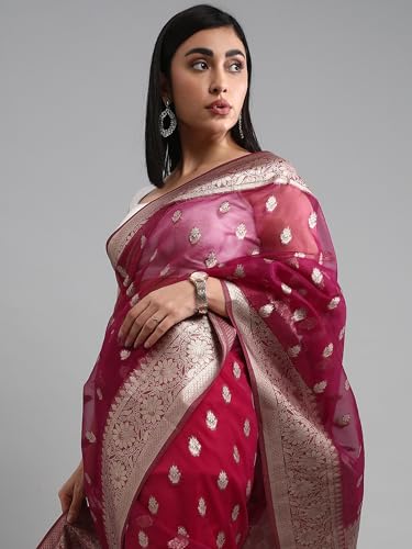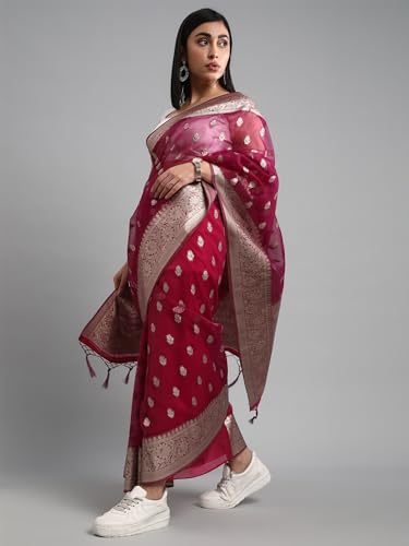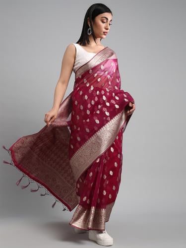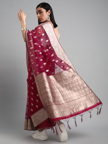 AKHILAM Women's Organza Woven Design Saree With Unstitched Blouse Piece(Purple_KARA193003_SNK)