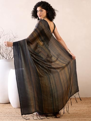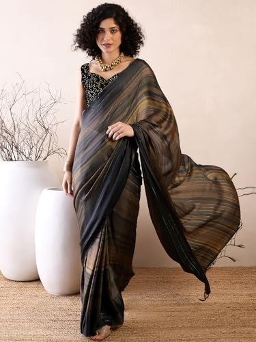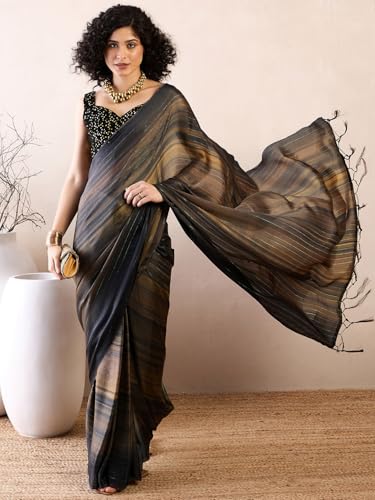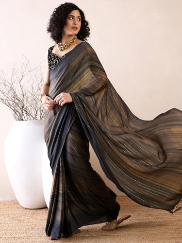 AKHILAM Women's Poly Georgette Striped Printed Ready To Wear one Minute Saree With Unstitched Blouse (RTW2RNBW204_HS_Parent)