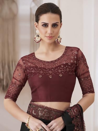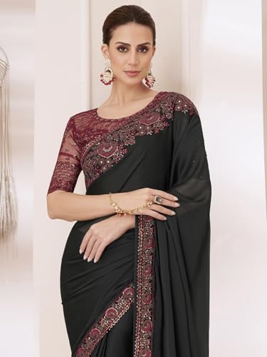 AKHILAM Women's Pure Chiffon Embellished Saree With Unstitched Blouse (SNDLWOD1301_TFH_Parent)