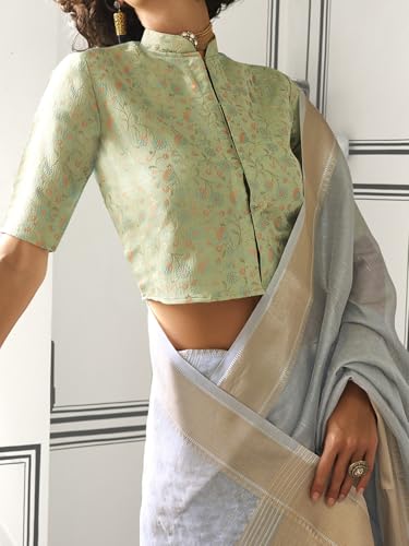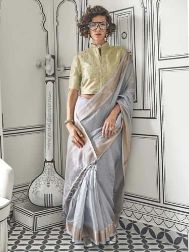 AKHILAM Women's Pure Chiffon Striped Printed Saree With Unstitched Blouse (KNORIE387001_RJ_Parent)