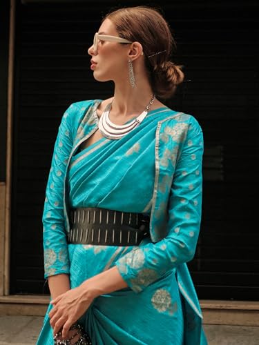 AKHILAM Women's Satin Silk Woven Design Saree With Unstitched Blouse Piece (KRONICLE344001_RJ_Parent)