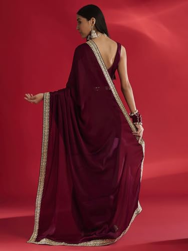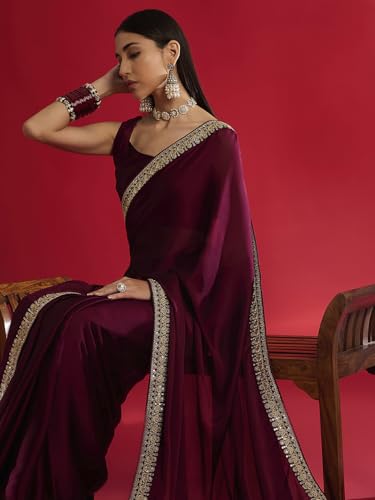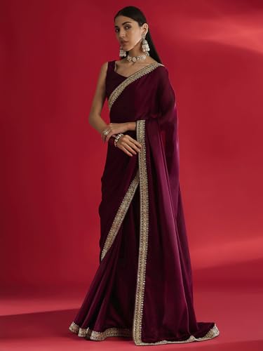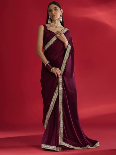 AKHILAM Women's Satin Solid Printed Saree With Unstitched Blouse