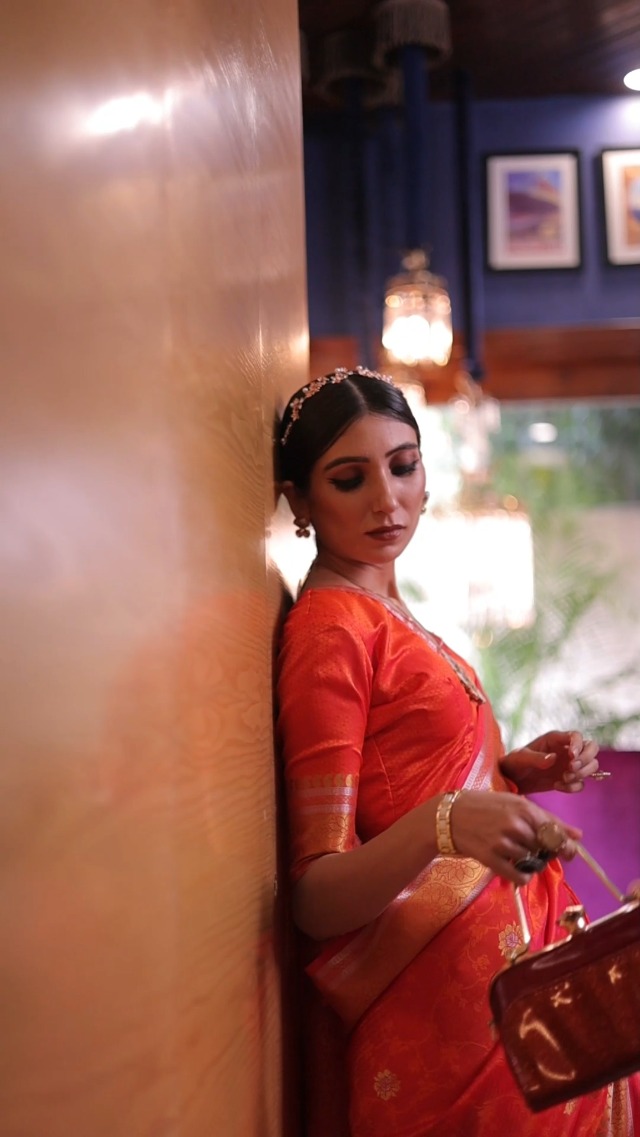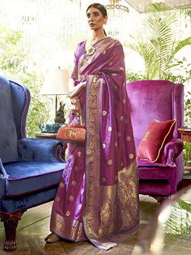 AKHILAM Women's Silk Blend Bandhani Print Kanjivaram Saree Saree With Unstitched Blouse Piece