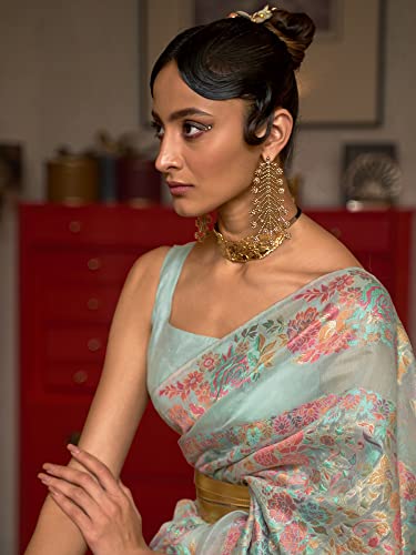 AKHILAM Women's Silk Blend Woven Design Saree With Unstitched Blouse Piece (KAAZI257001_RJ_Parent)