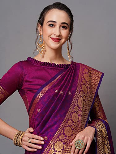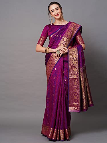 AKHILAM Women's Silk Blend Woven Design Saree With Unstitched Blouse Piece(KLND1970_Parent)