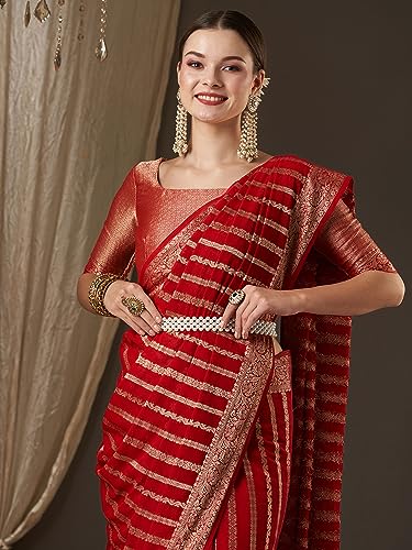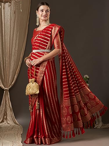 AKHILAM Women's Woven Design Leheriya Georgette Saree With Unstiched Blouse Piece