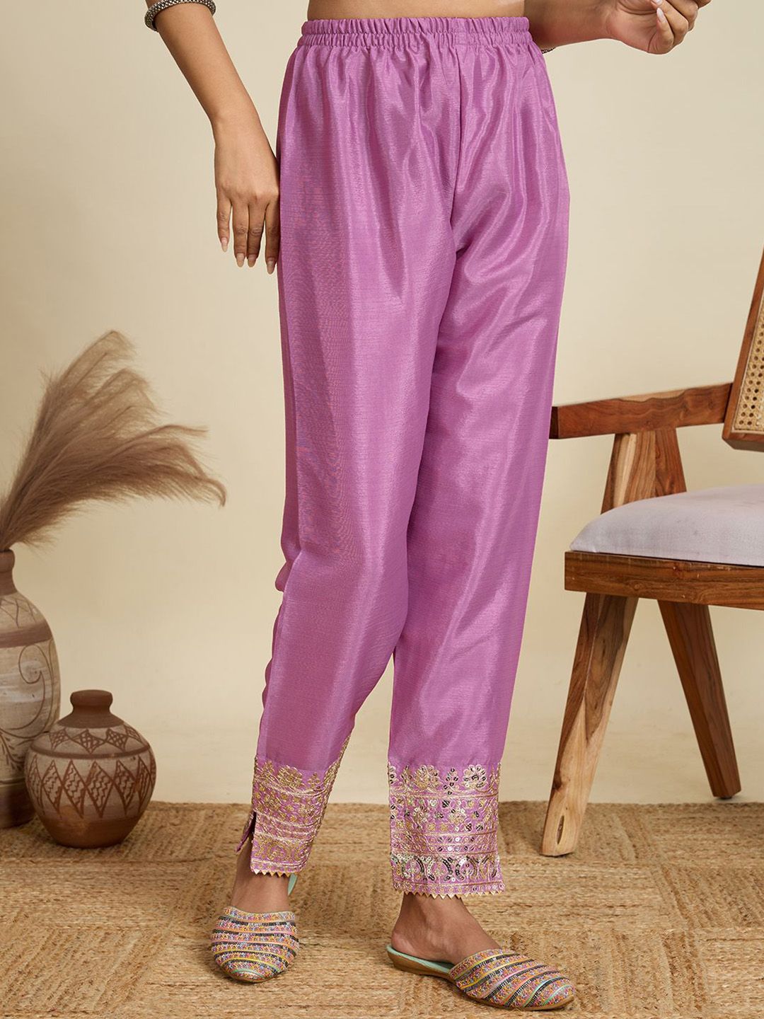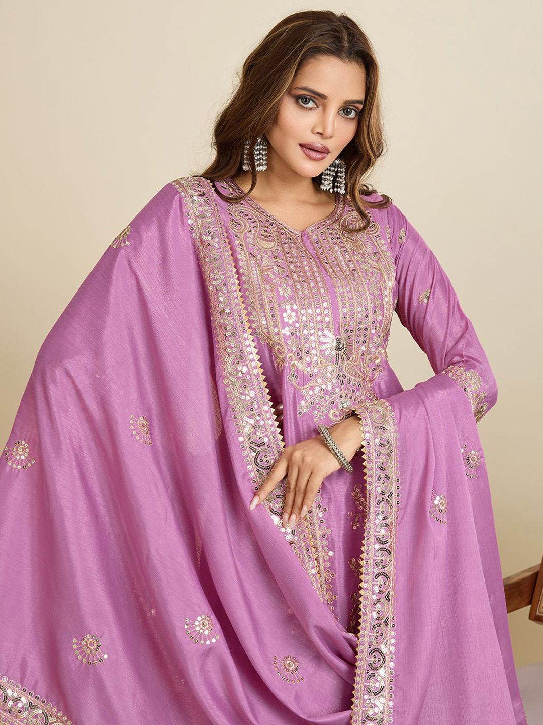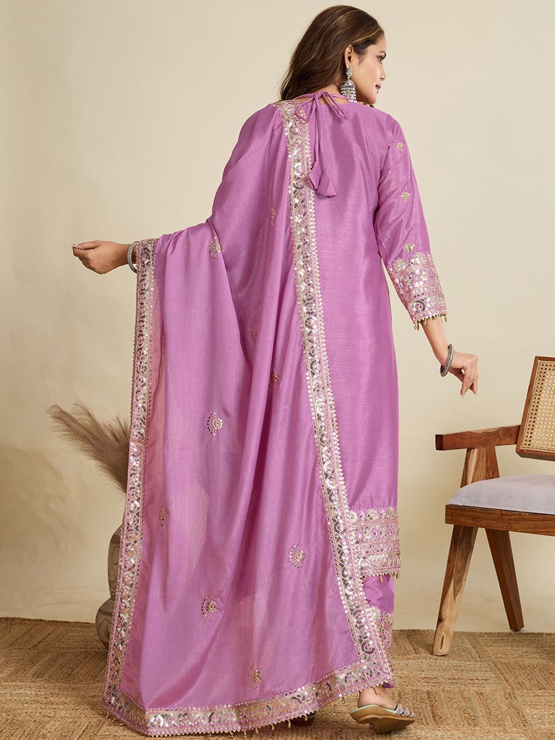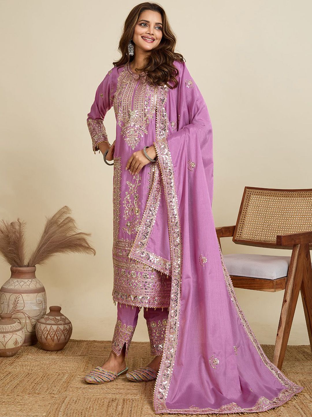 AKSHARAM Floral Embroidered Sequinned Straight Kurta With Trousers & Dupatta