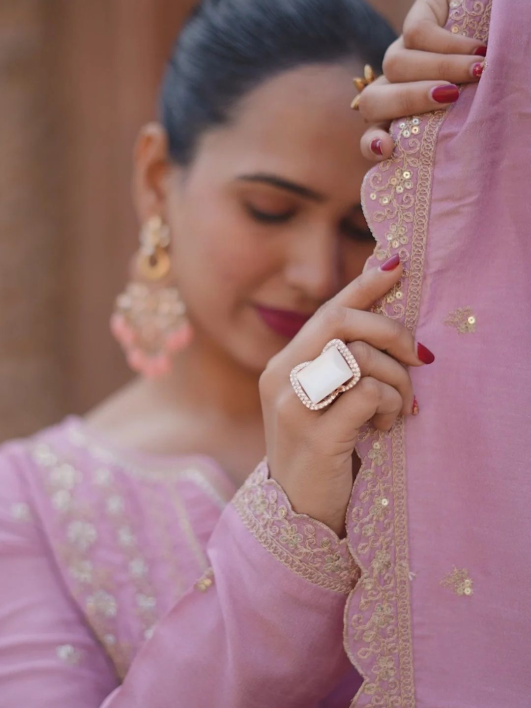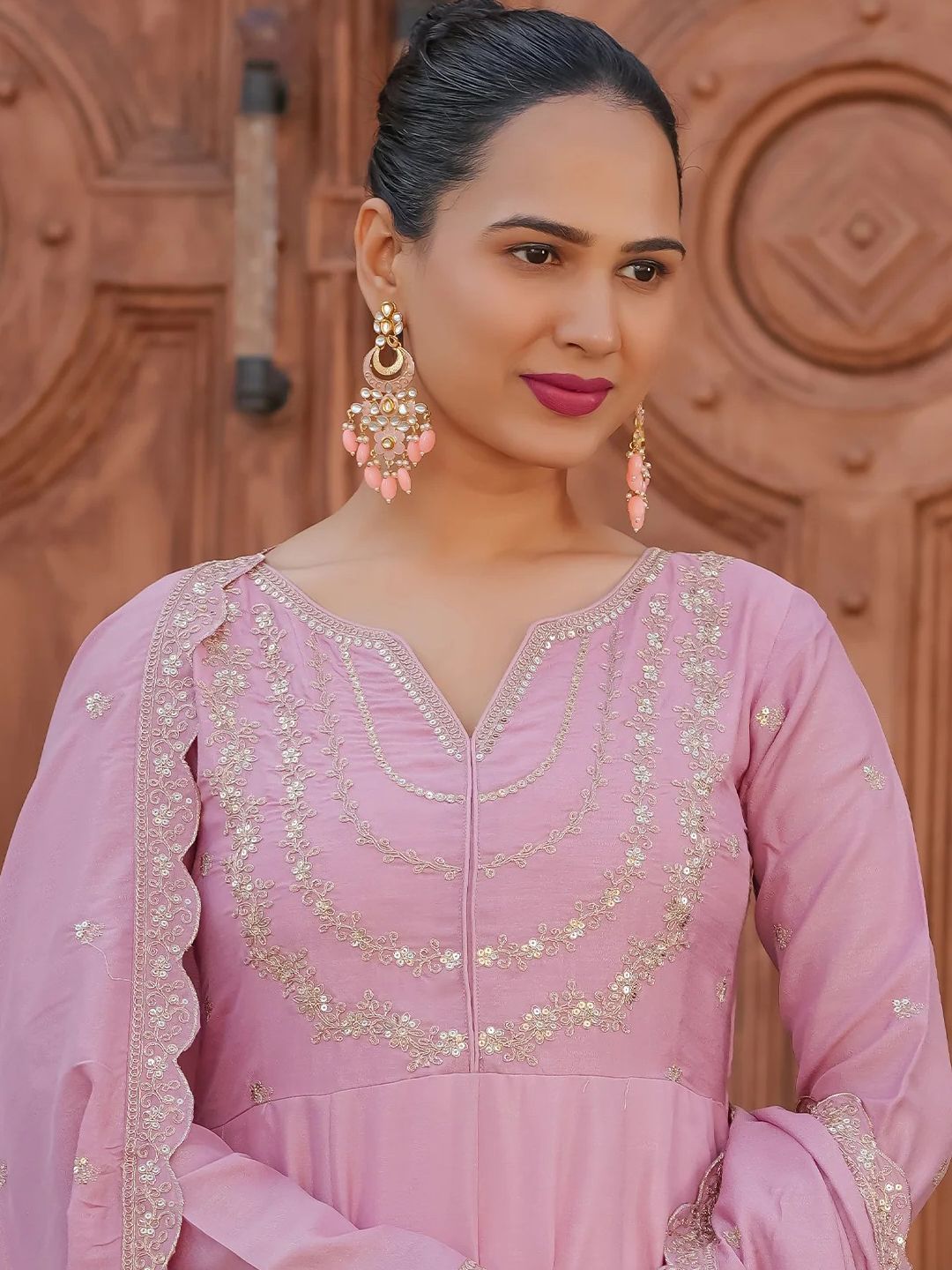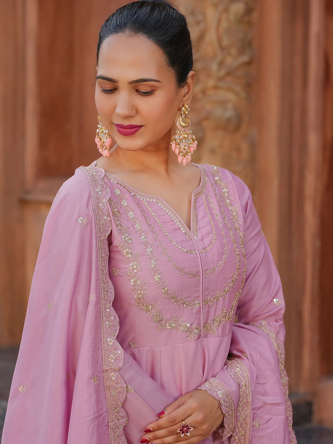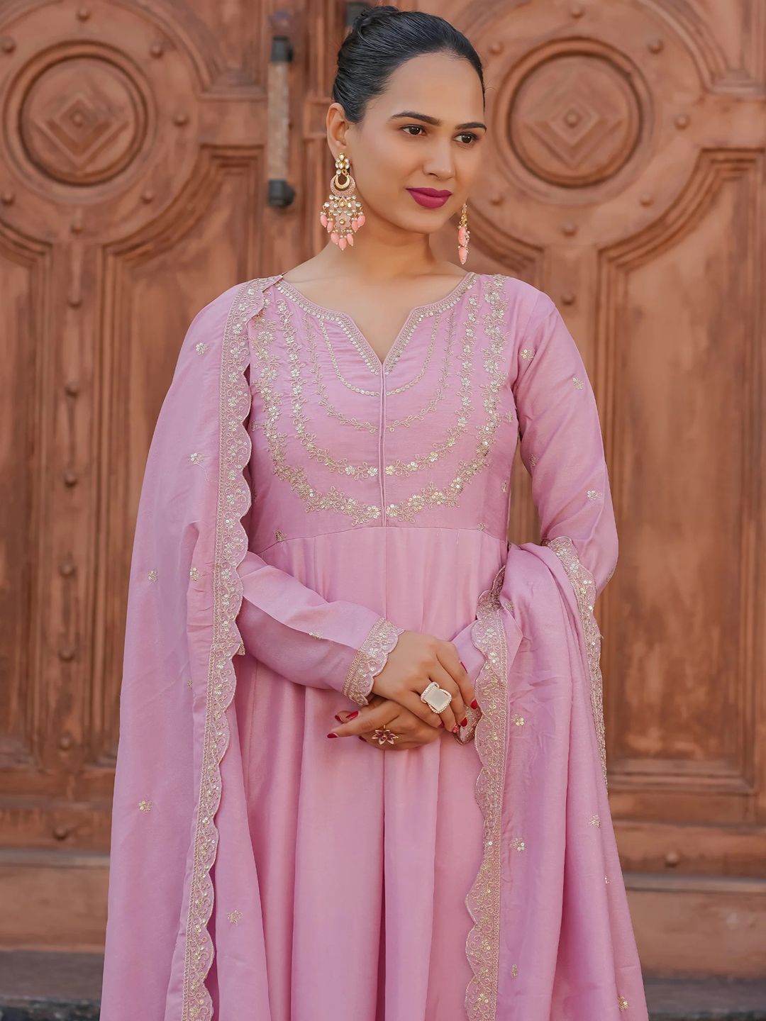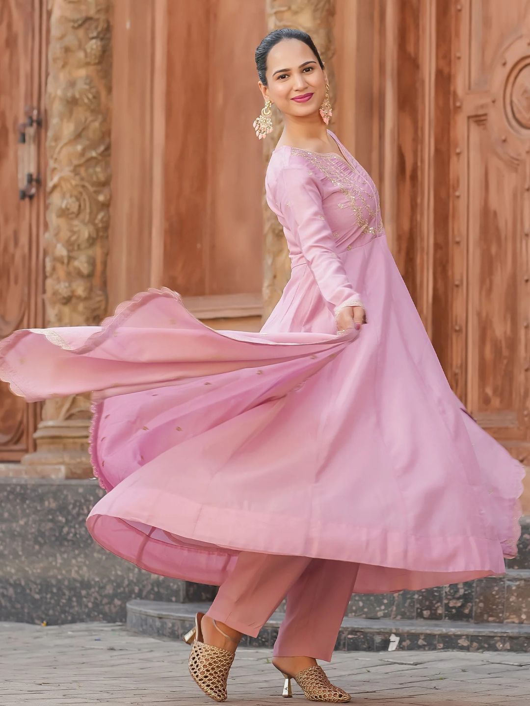 AKSHARAM Women Floral Embroidered Anarkali Kurta with Trouser & Dupatta