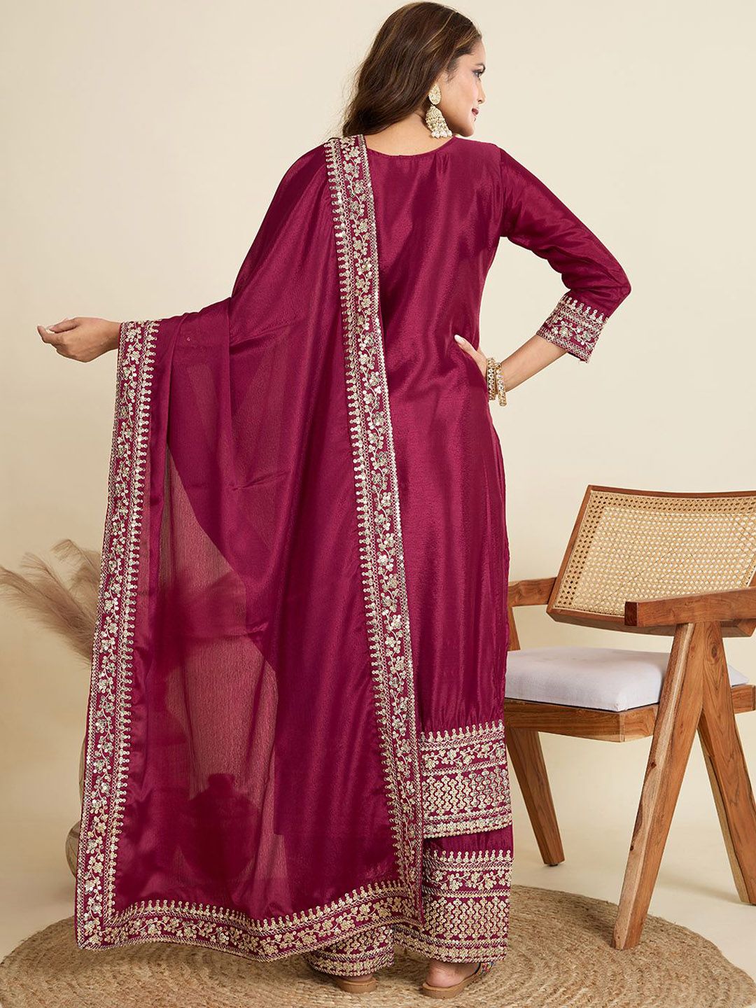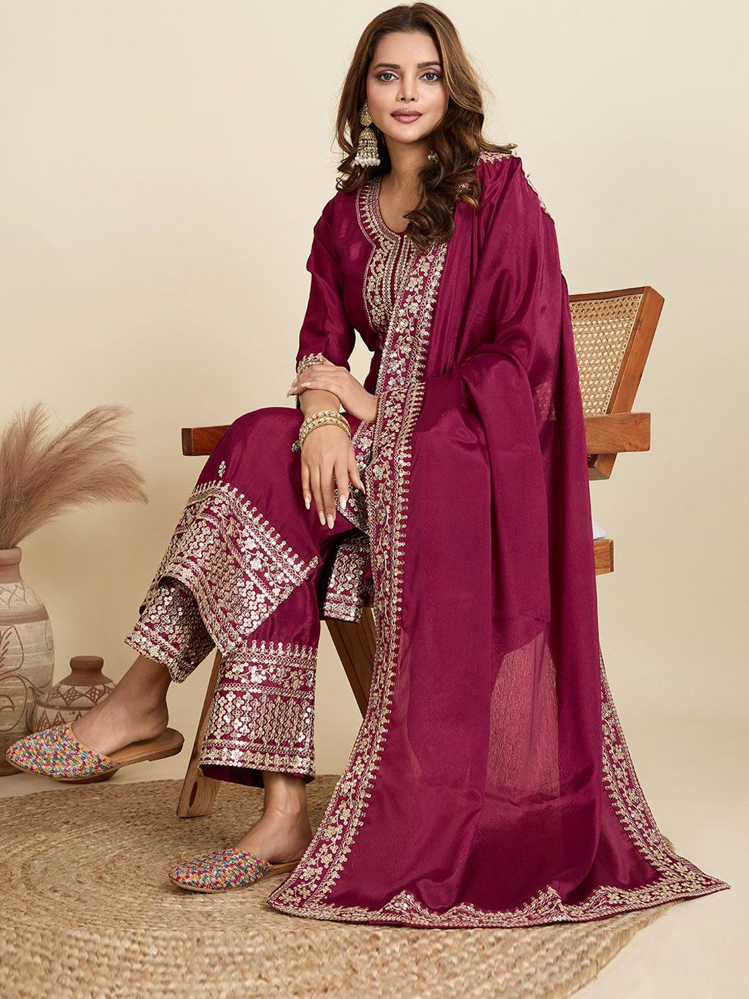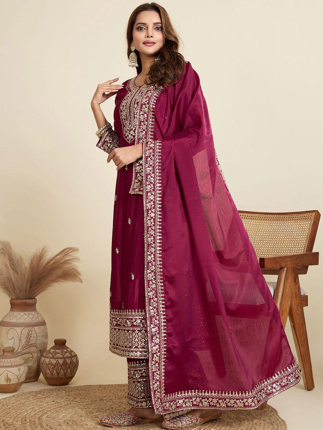 AKSHARAM Women Floral Embroidered Kurta with Trousers & Dupatta