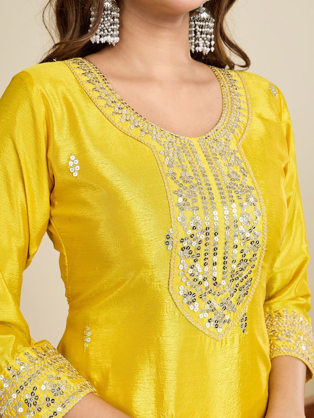 Buy this stylish AKSHARAM Women Floral Embroidered Regular Sequinned Kurta & Trousers & Dupatta at Marincart Nepal. This product offers great quality and value. Perfect for those looking for the latest trends in fashion. Get yours now at unbeatable prices.