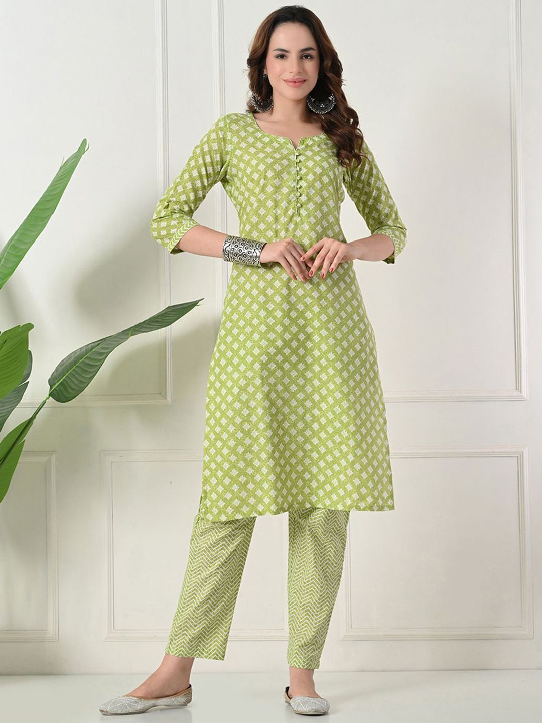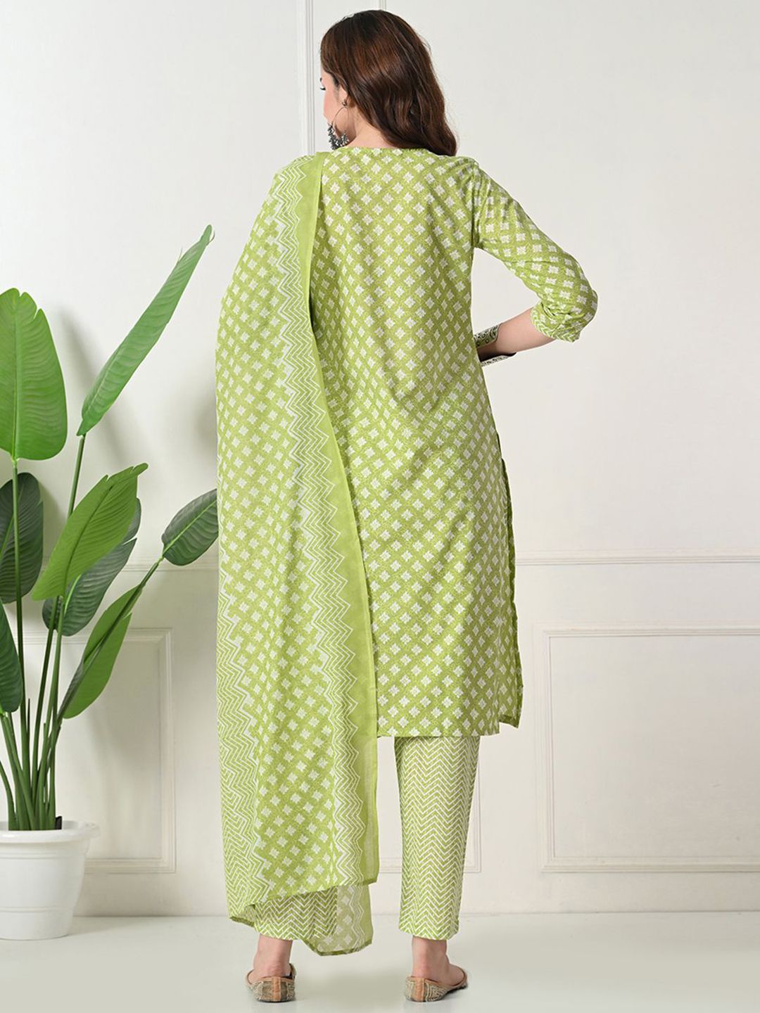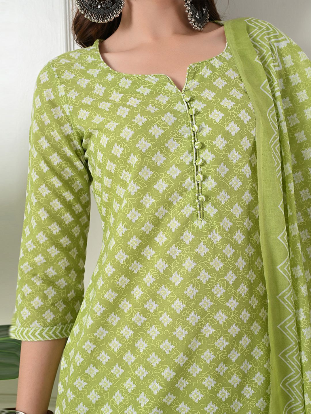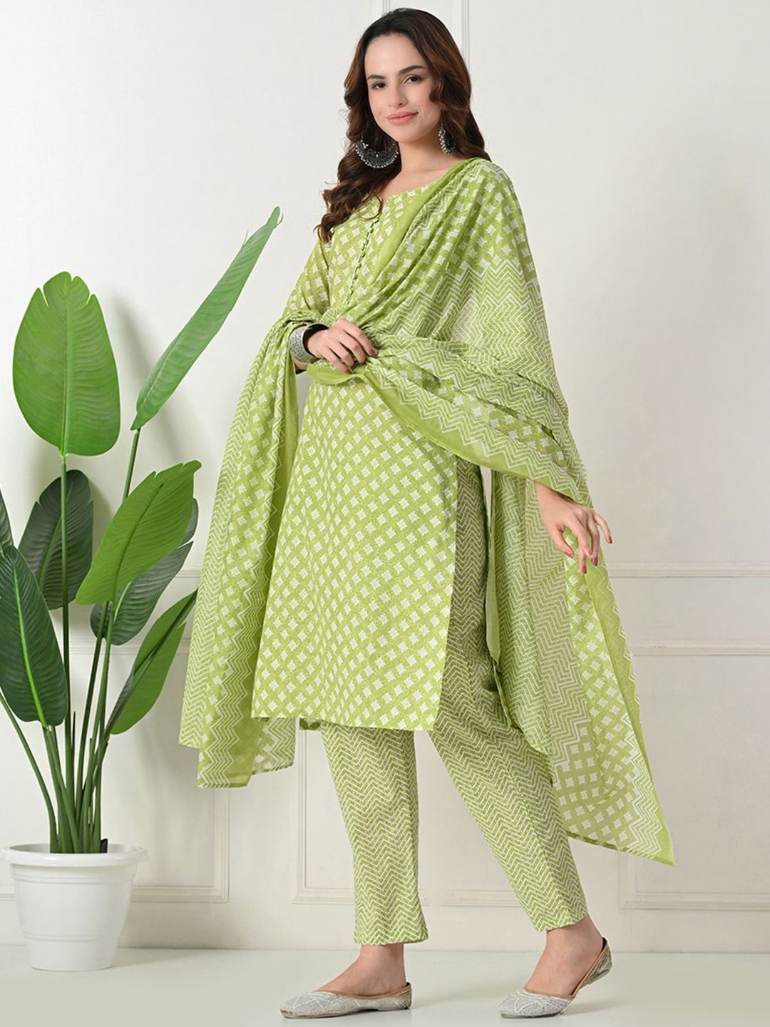 Akshatani Floral Printed Notch Neck Pure Cotton Straight Kurta With Trousers & Dupatta