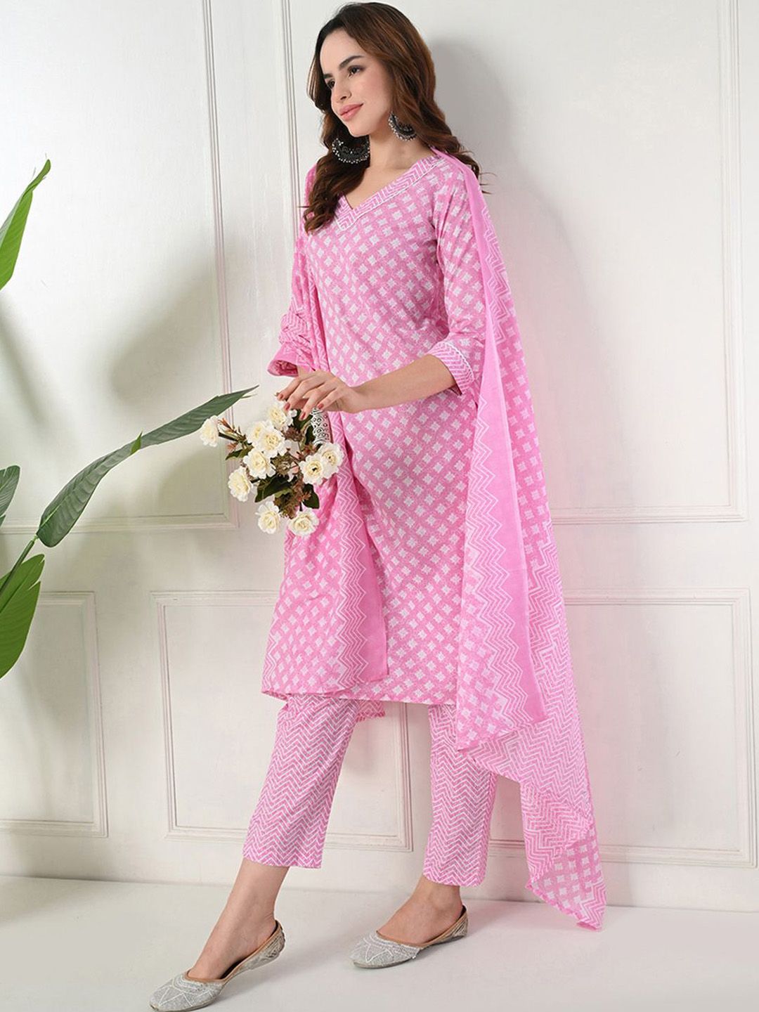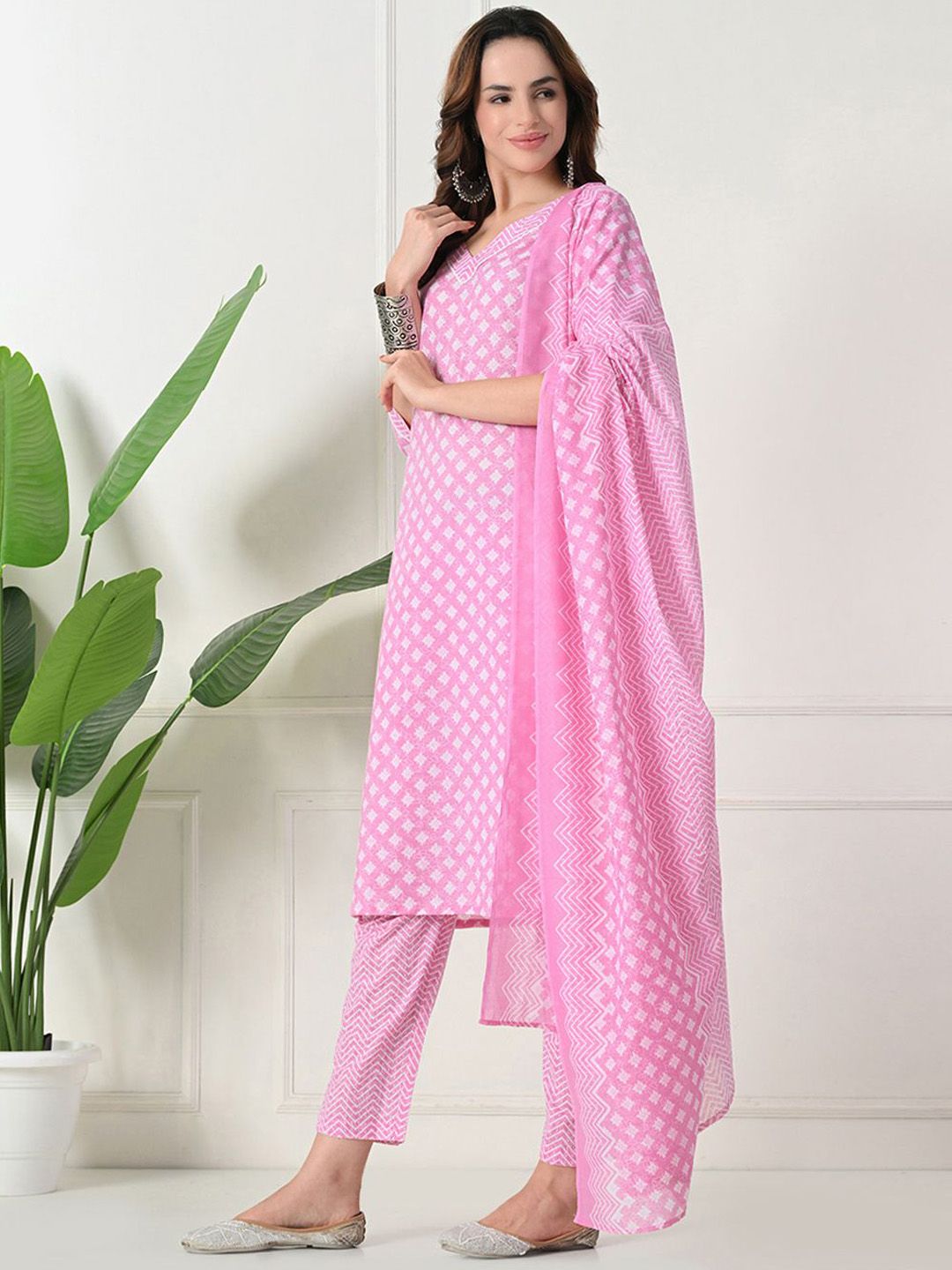 Akshatani Women Ethnic Motifs Printed Regular Pure Cotton Kurta with Trousers & Dupatta