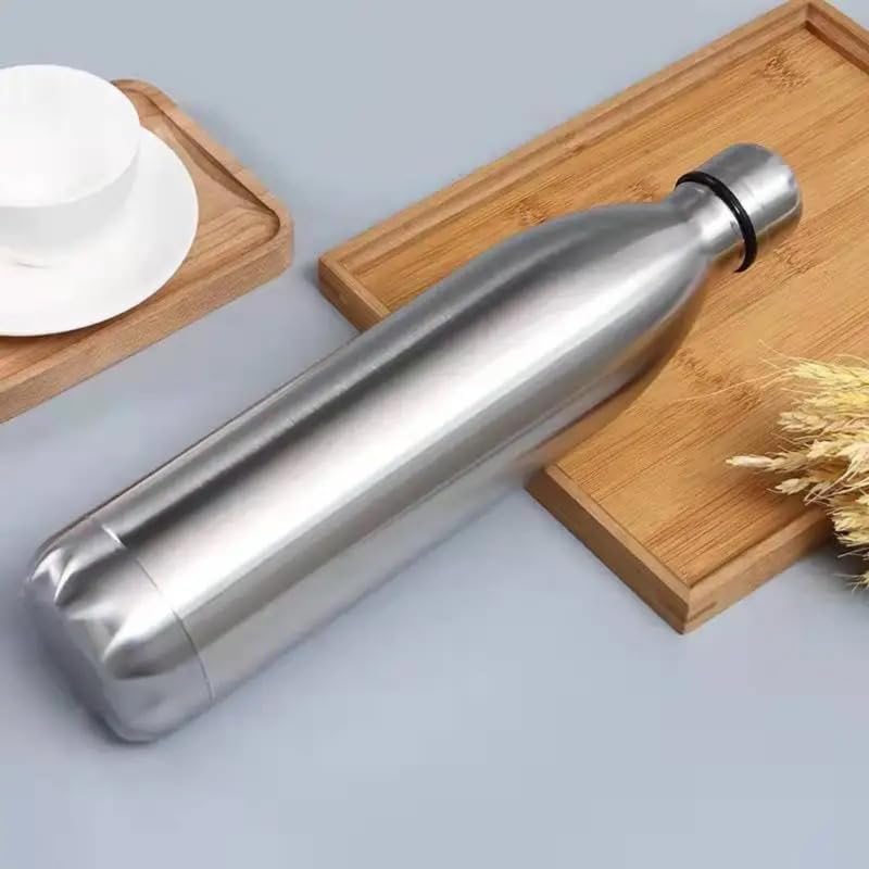 Akshify Hot & Cold Stainless Steel Flask with Jute Bag - 500ml Silver |Steel Bottle|Thermoflask|Leak Proof|Travelling|School & Trekking