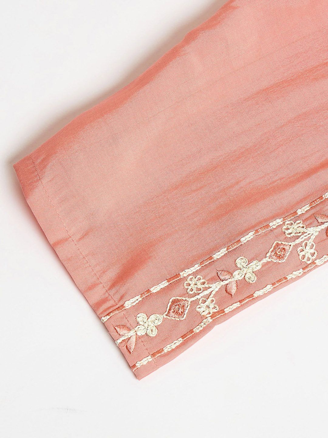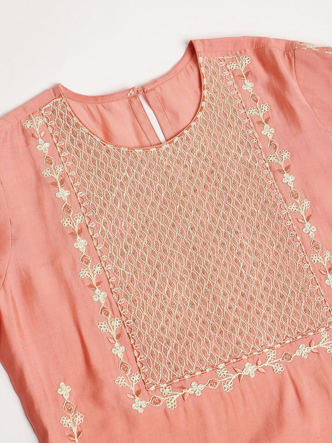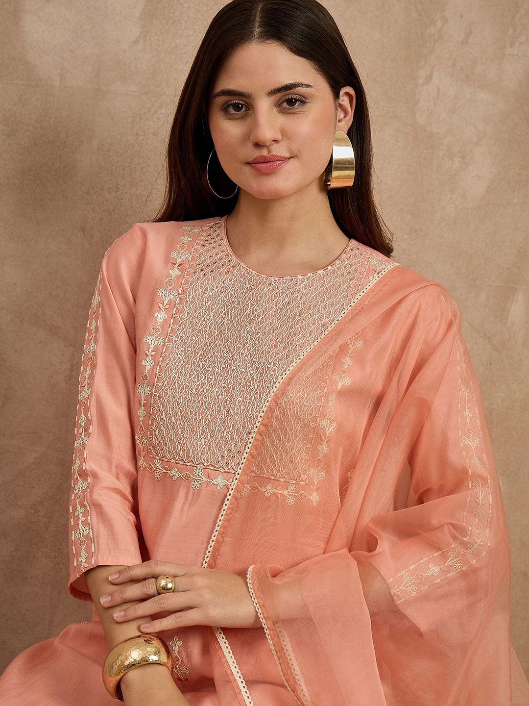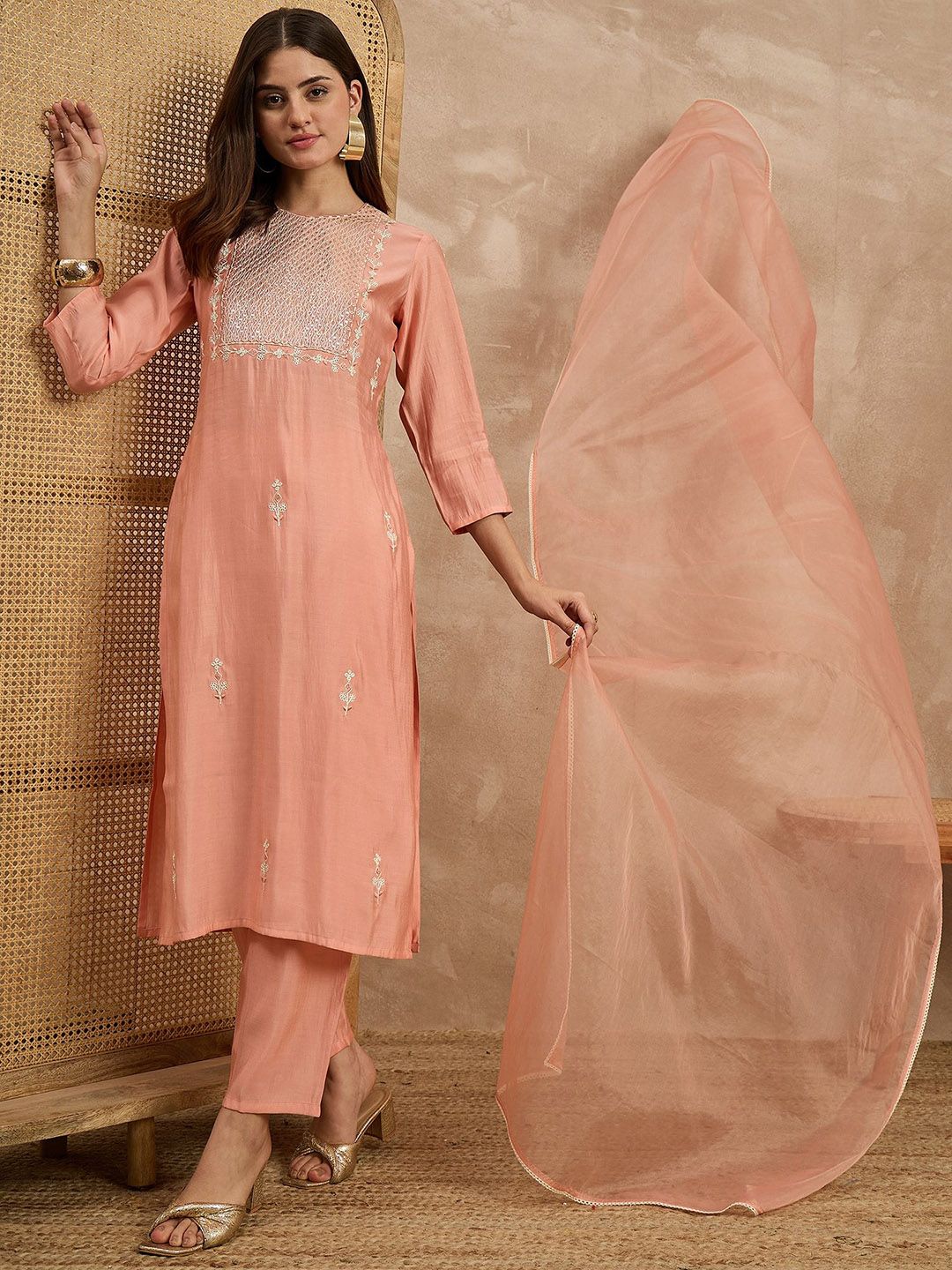 all about you Embroidered Round Neck Sequinned Straight Kurta With Trousers & Dupatta