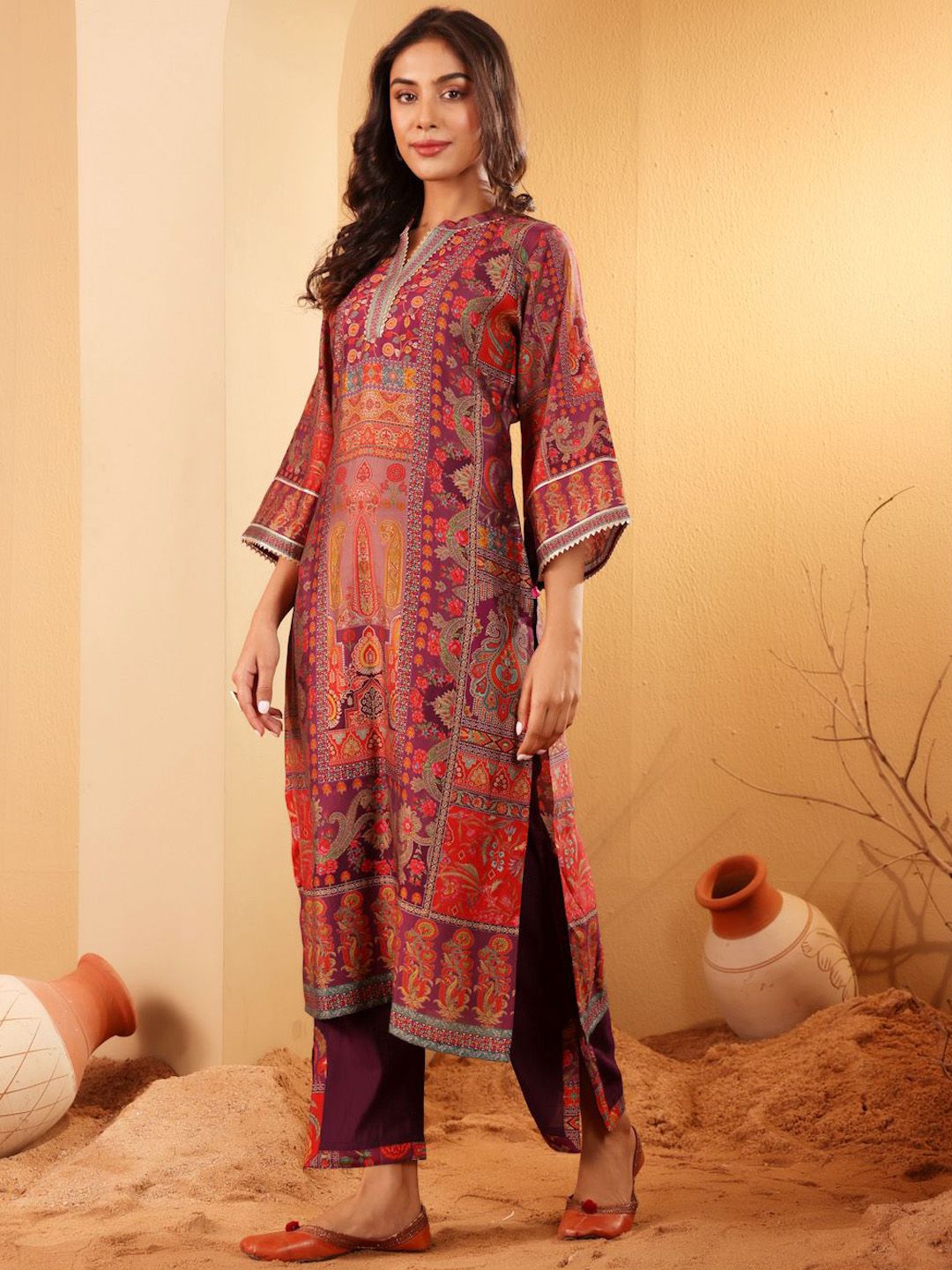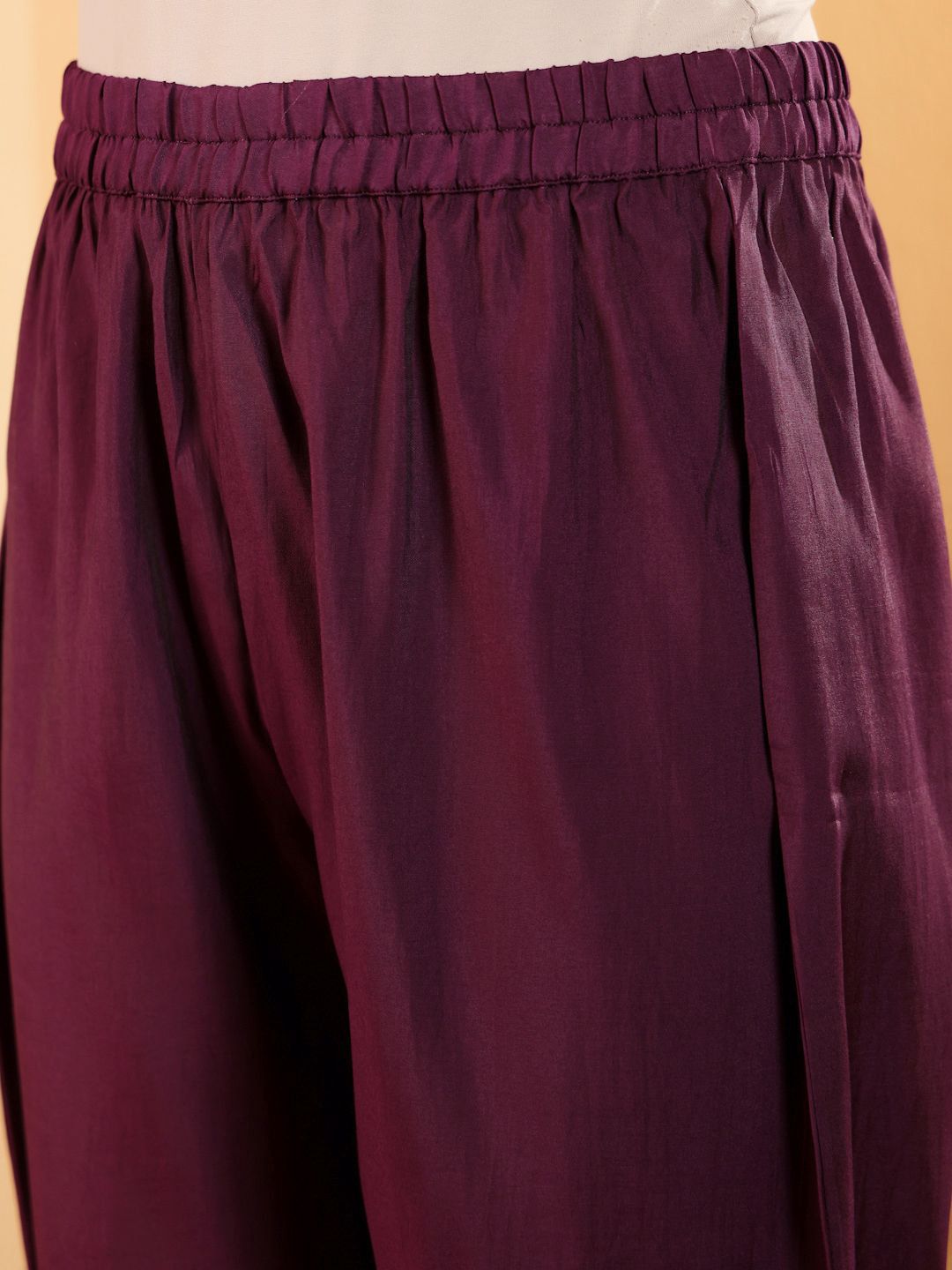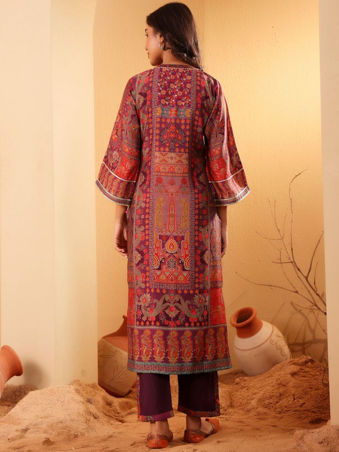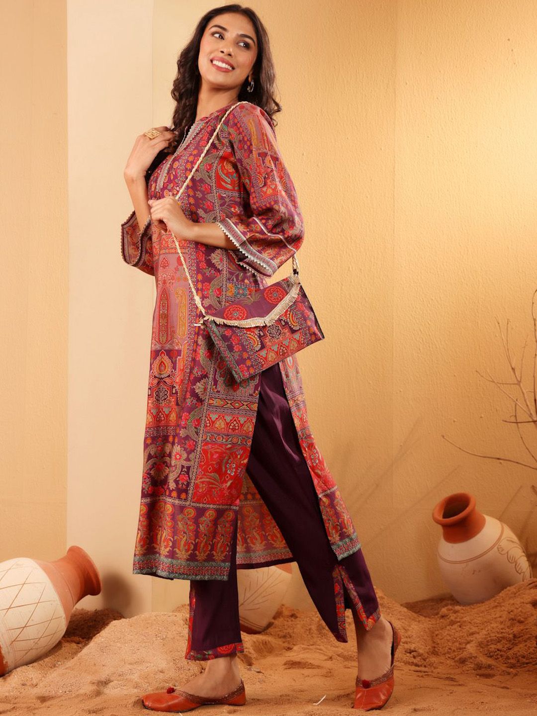 all about you Ethnic Motifs Printed Mandarin Collar Chanderi Silk Kurta With Trousers