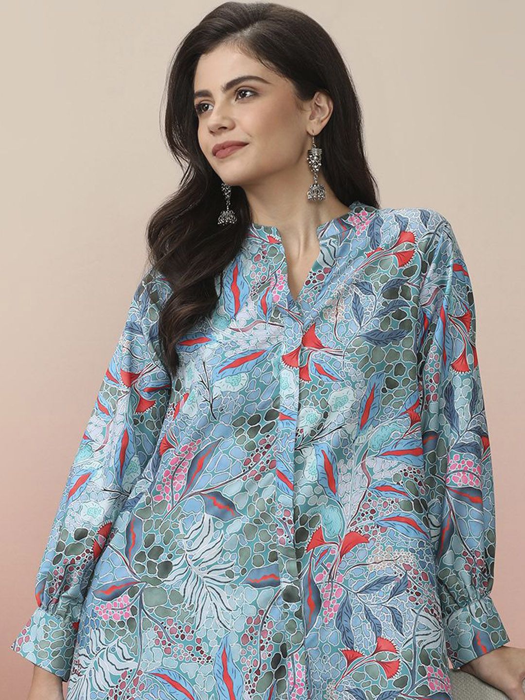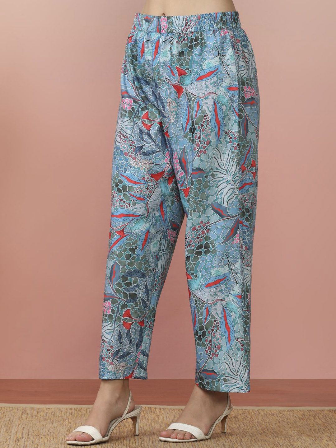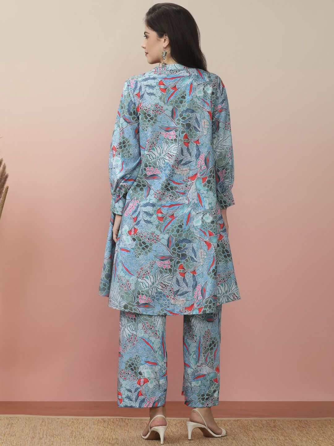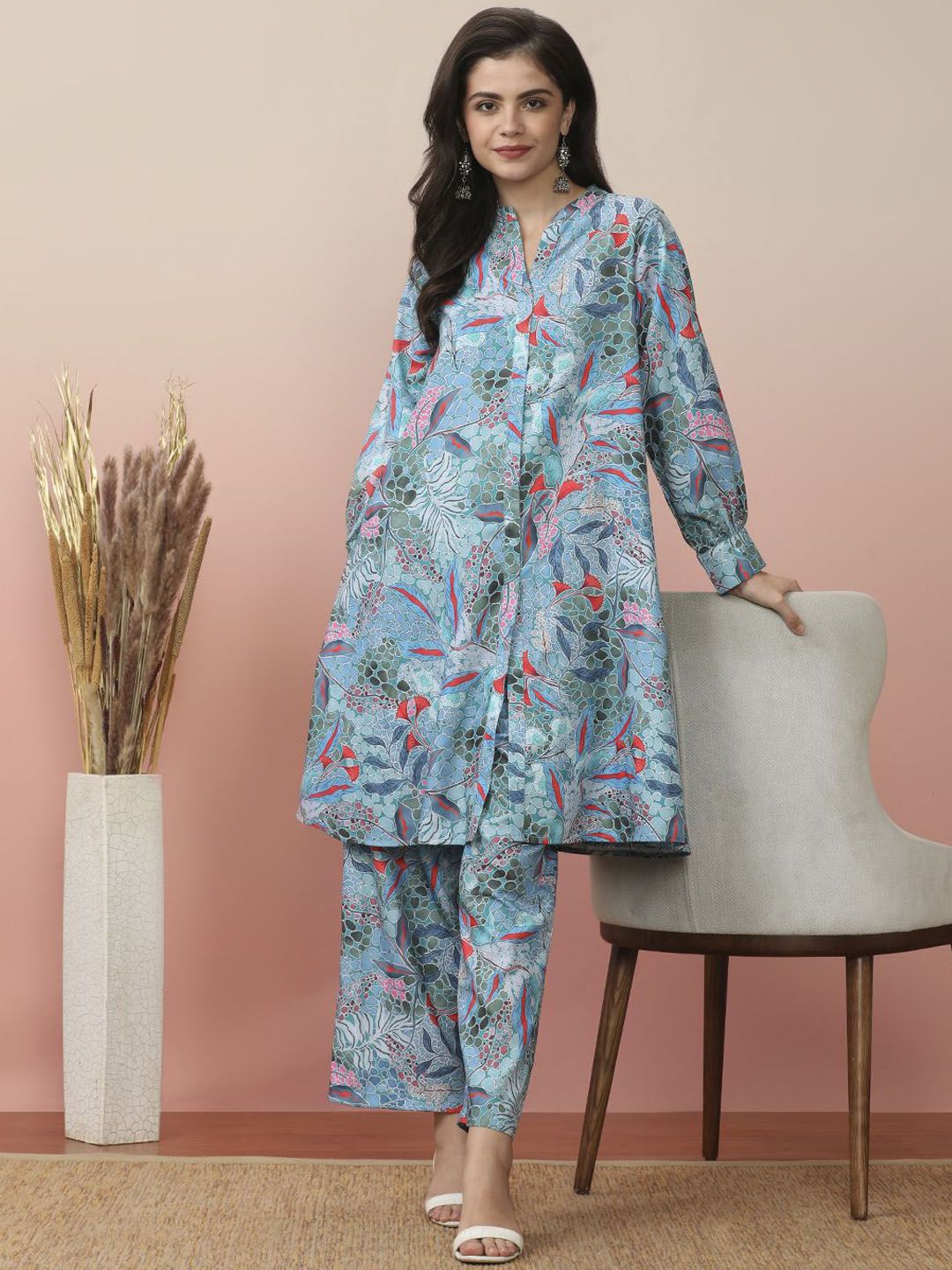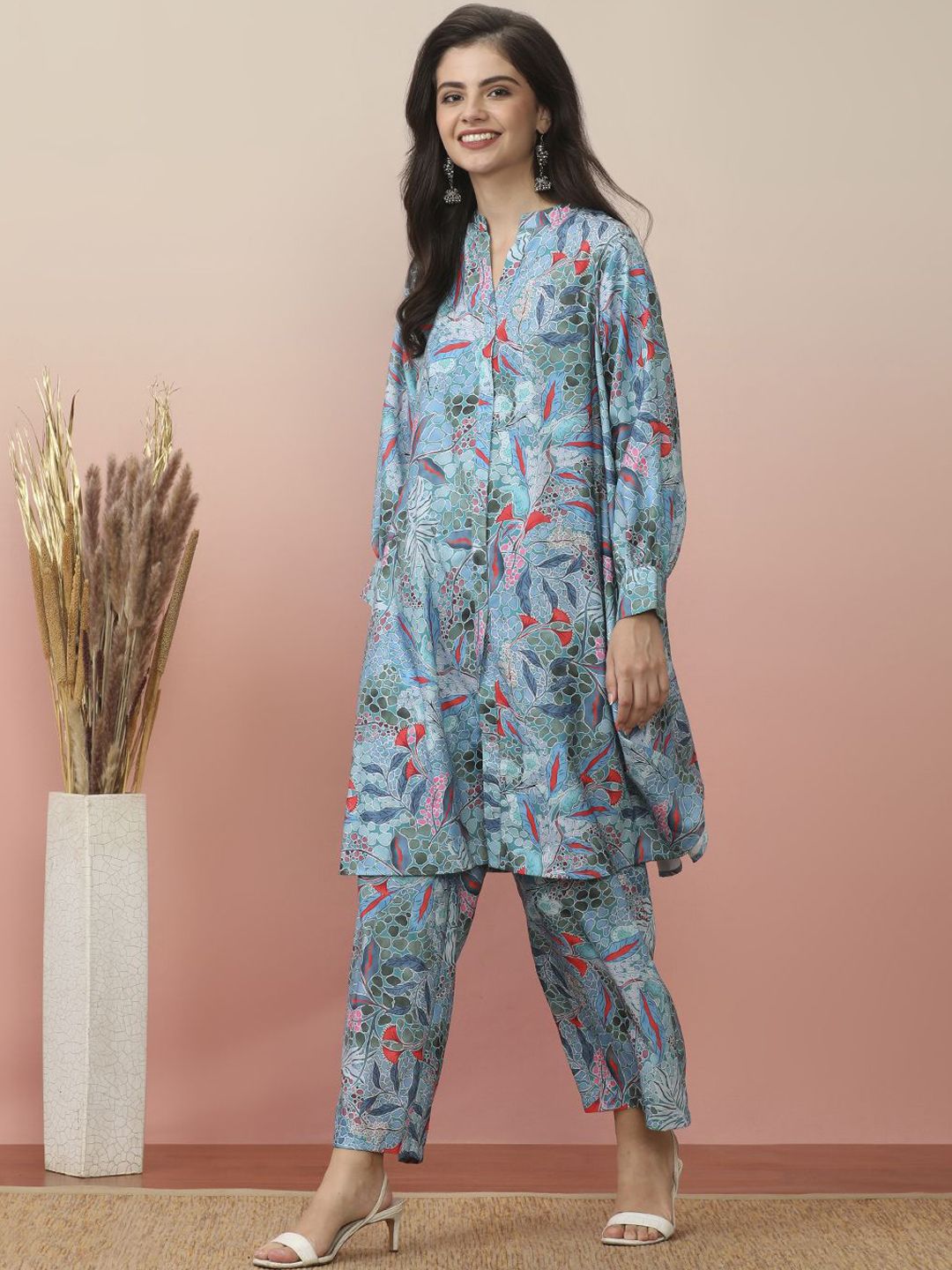 all about you Floral Printed Mandarin Collar A-Line Kurta With Trouser