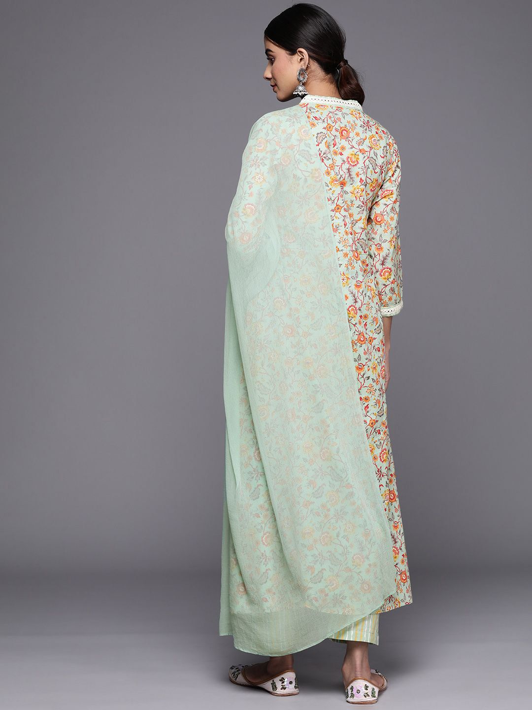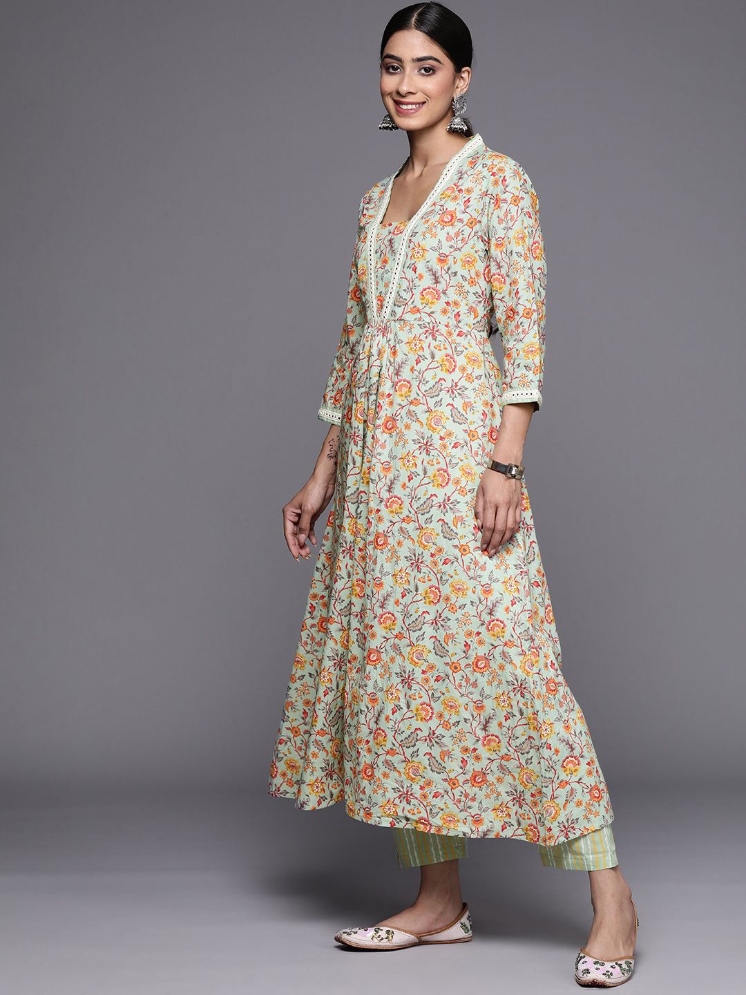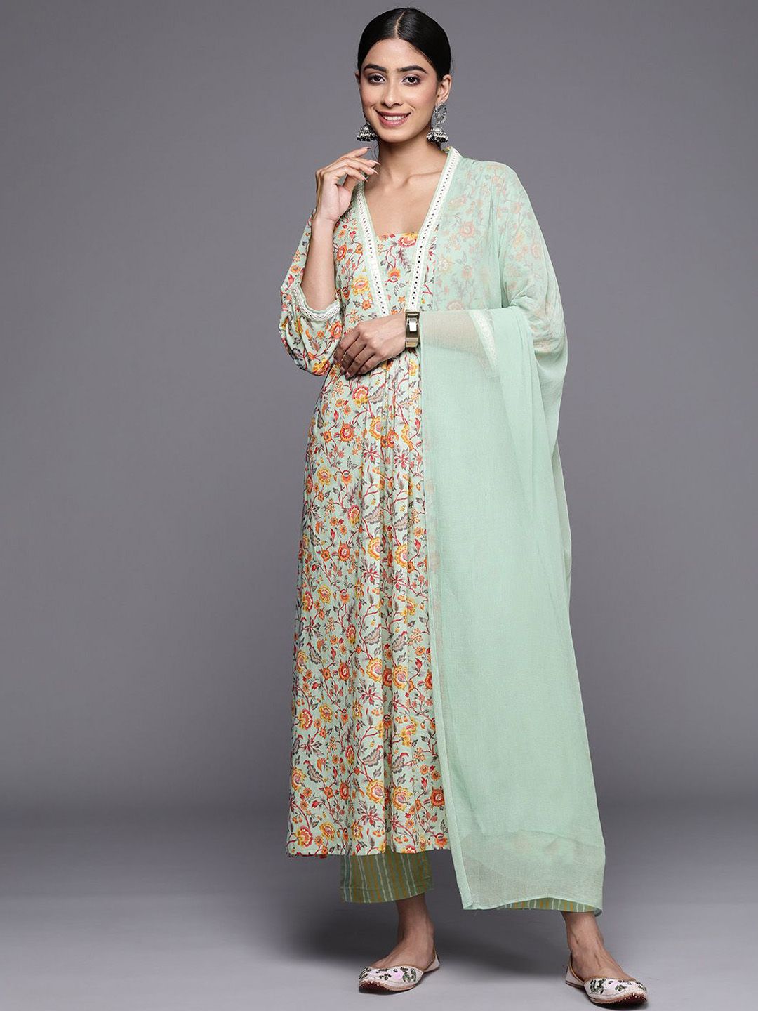 all about you Floral Printed Mirror Work A-Line Kurta With Trousers & Dupatta