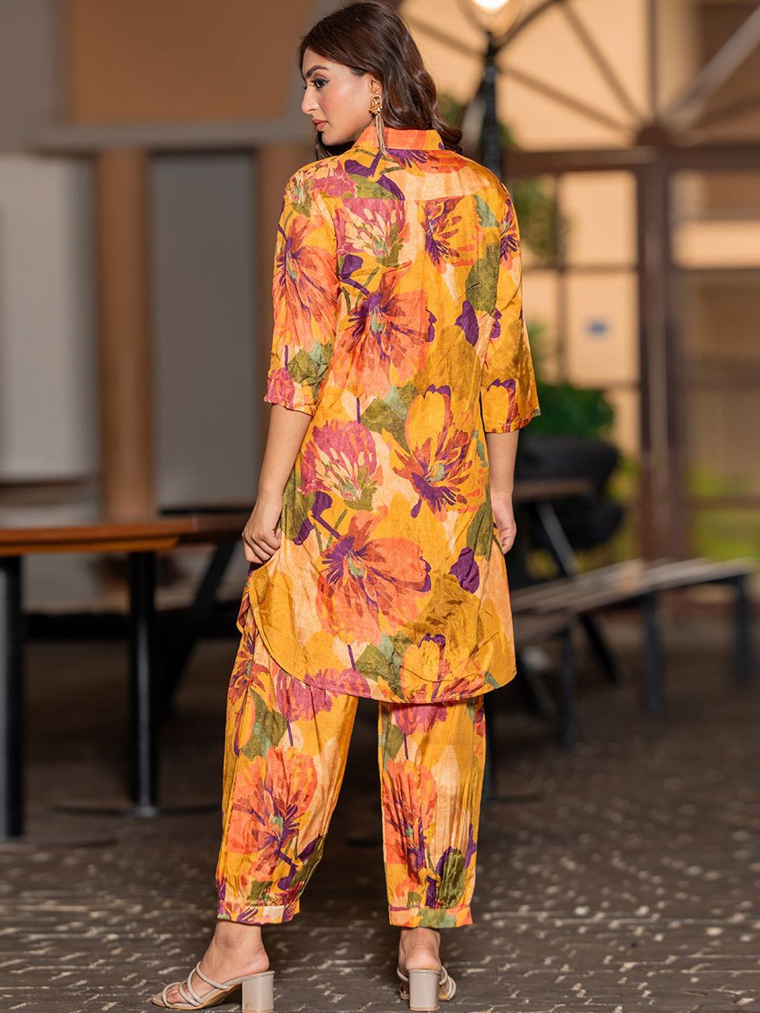 all about you Floral Printed Shirt Collar Organic Cotton Straight Kurta With Salwar
