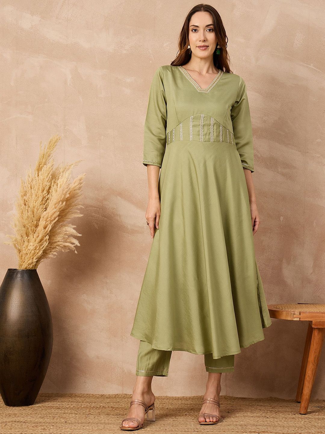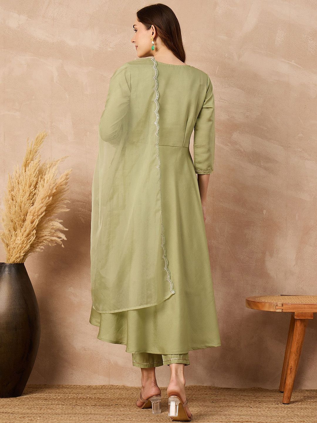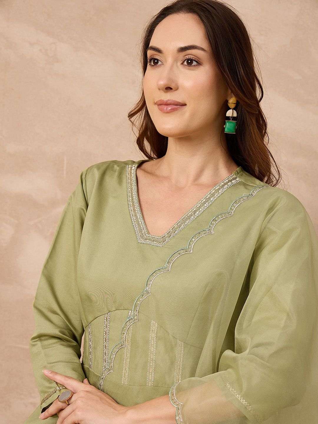 all about you V-Neck Sequinned A-Line Kurta With Trousers & Dupatta