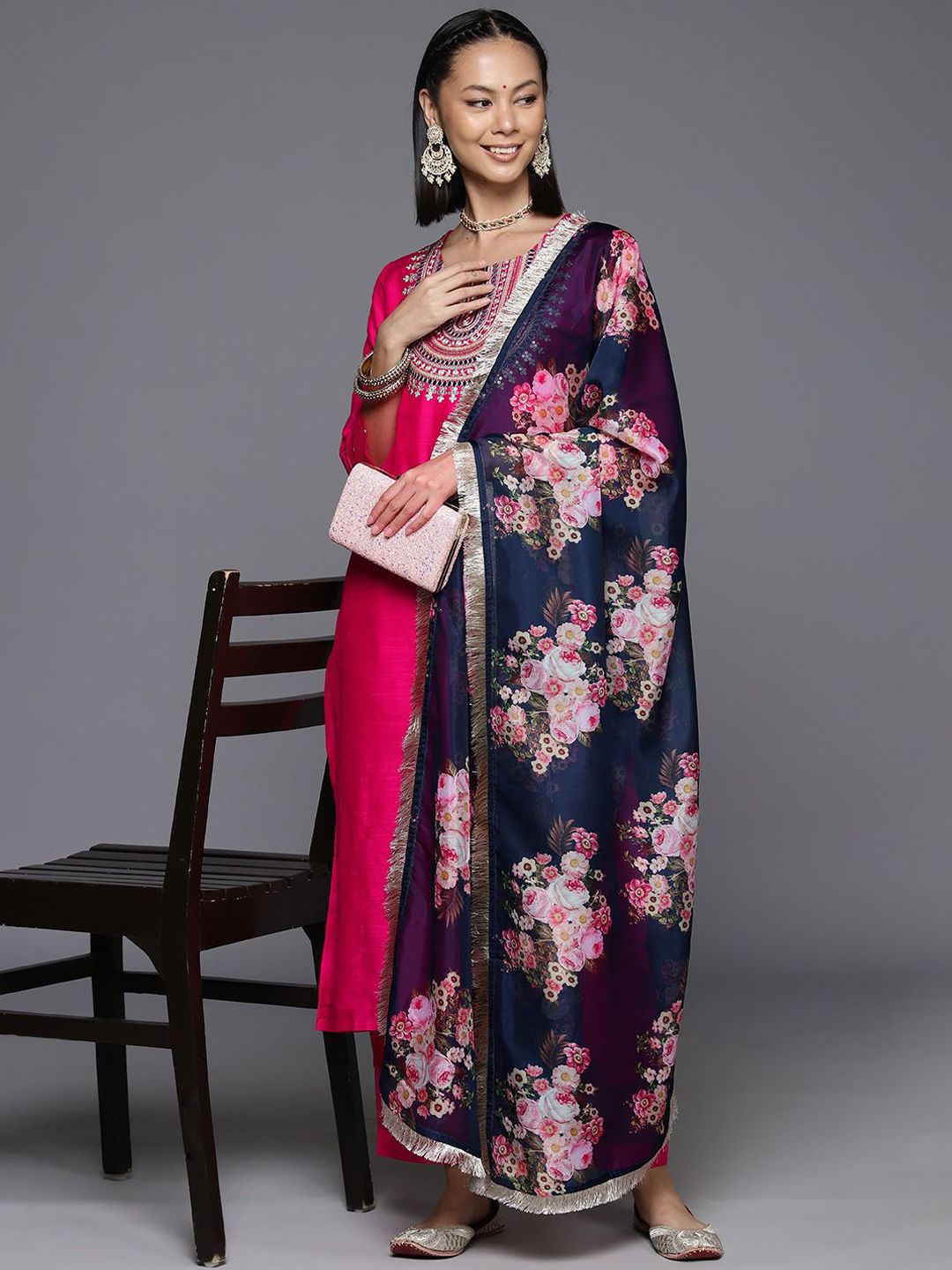 all about you Women Ethnic Motifs Embroidered Kurta with Trousers & Dupatta