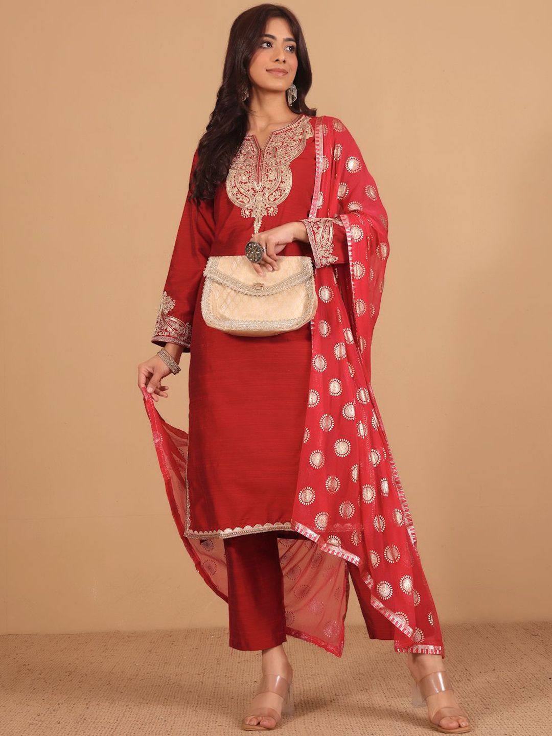 all about you Women Ethnic Motifs Embroidered Kurta with Trousers & Dupatta
