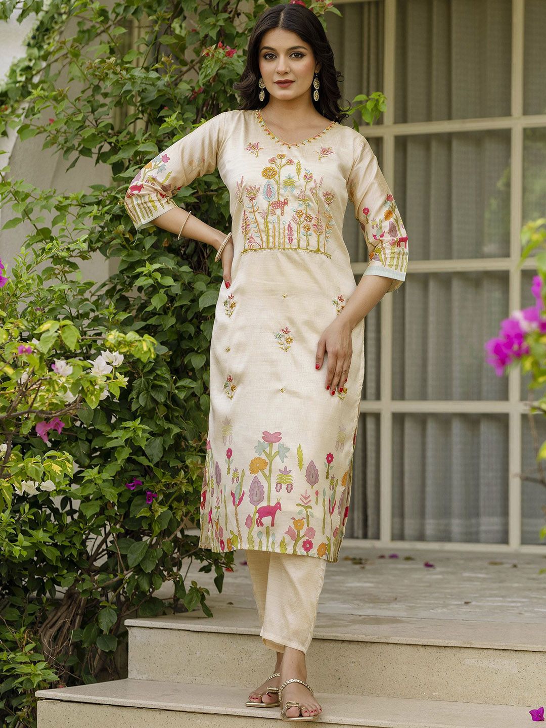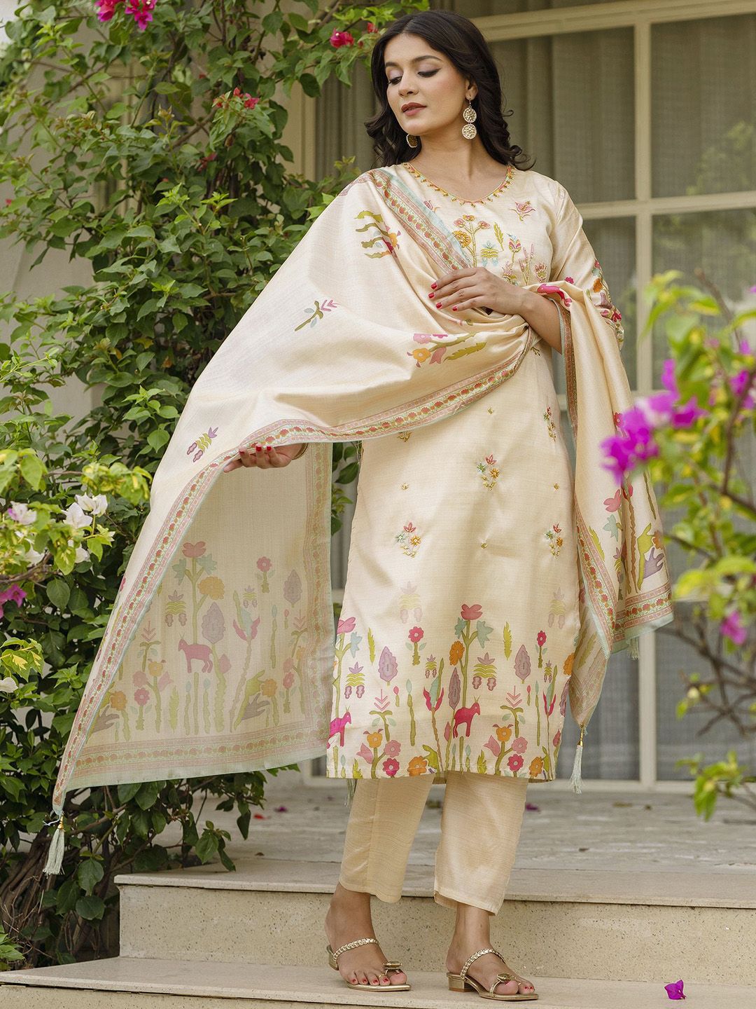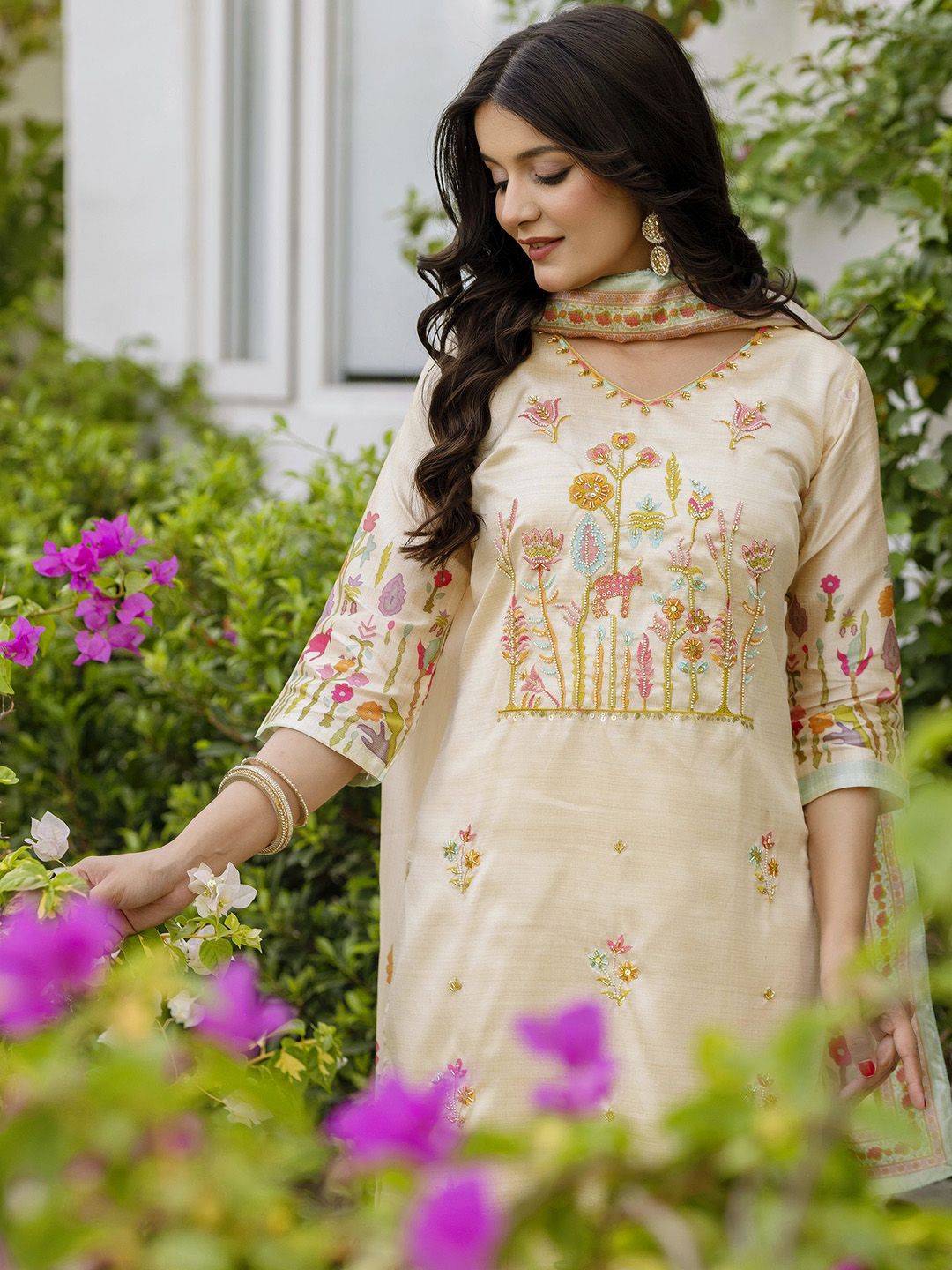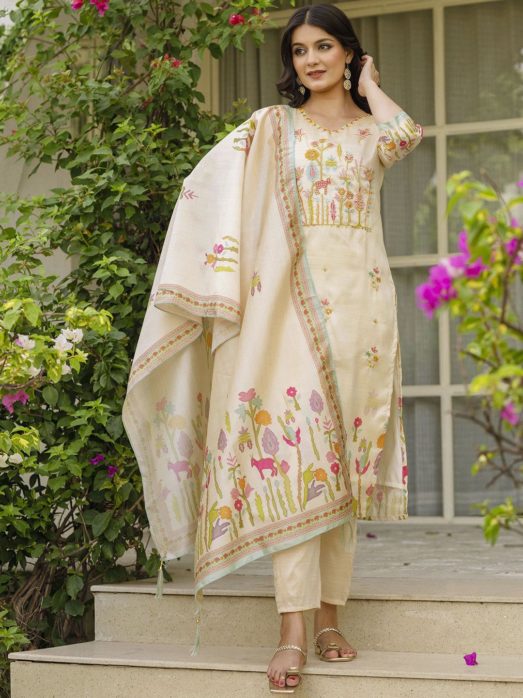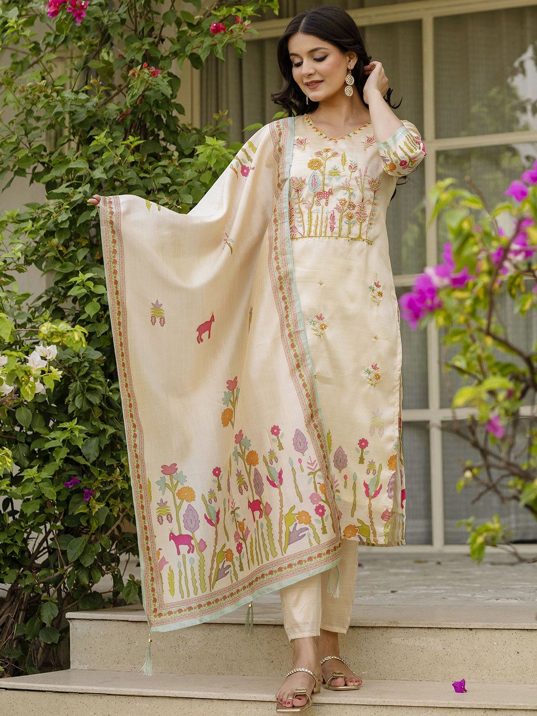 all about you Women Floral Embroidered Kurta with Trousers & Dupatta