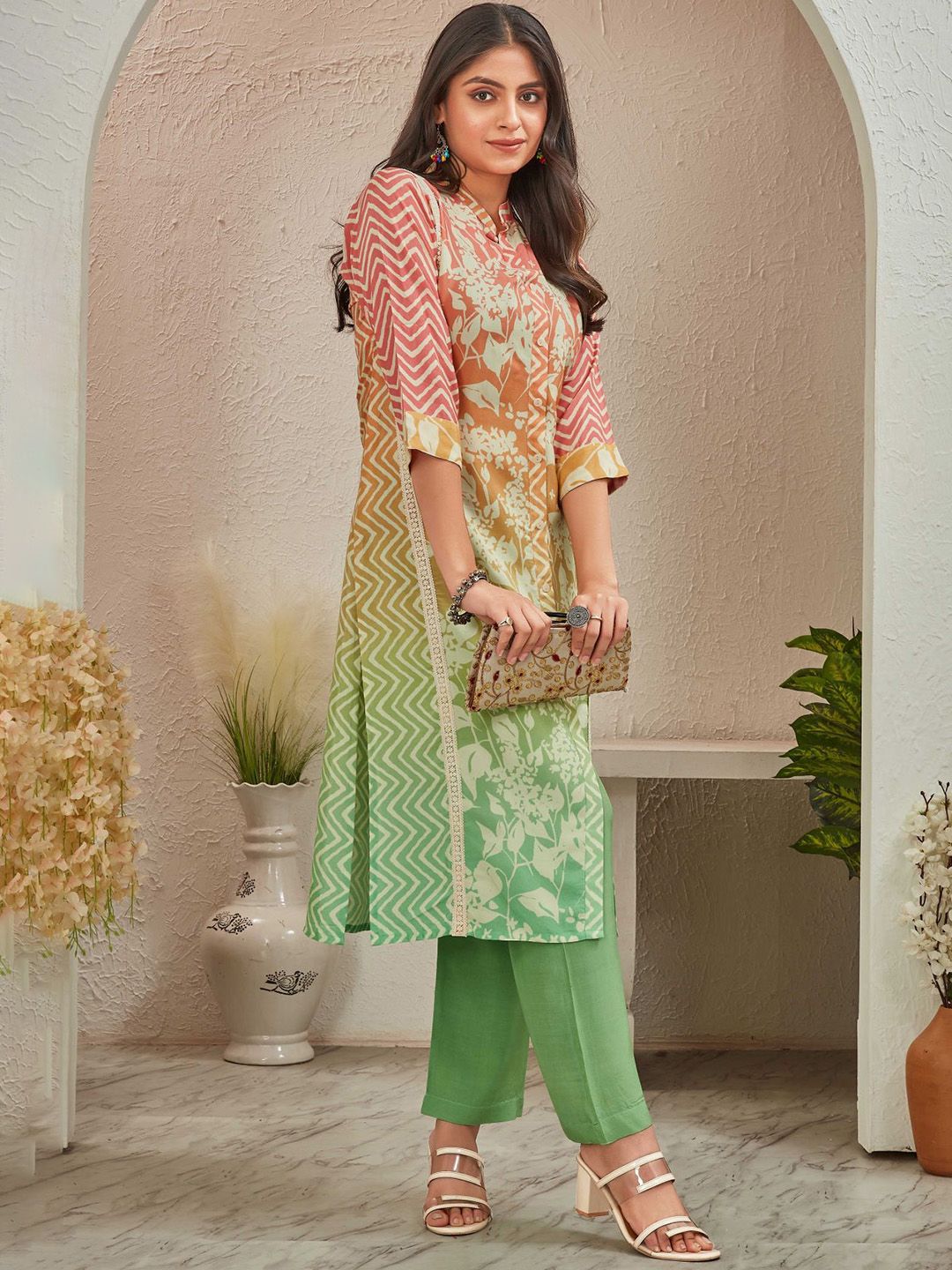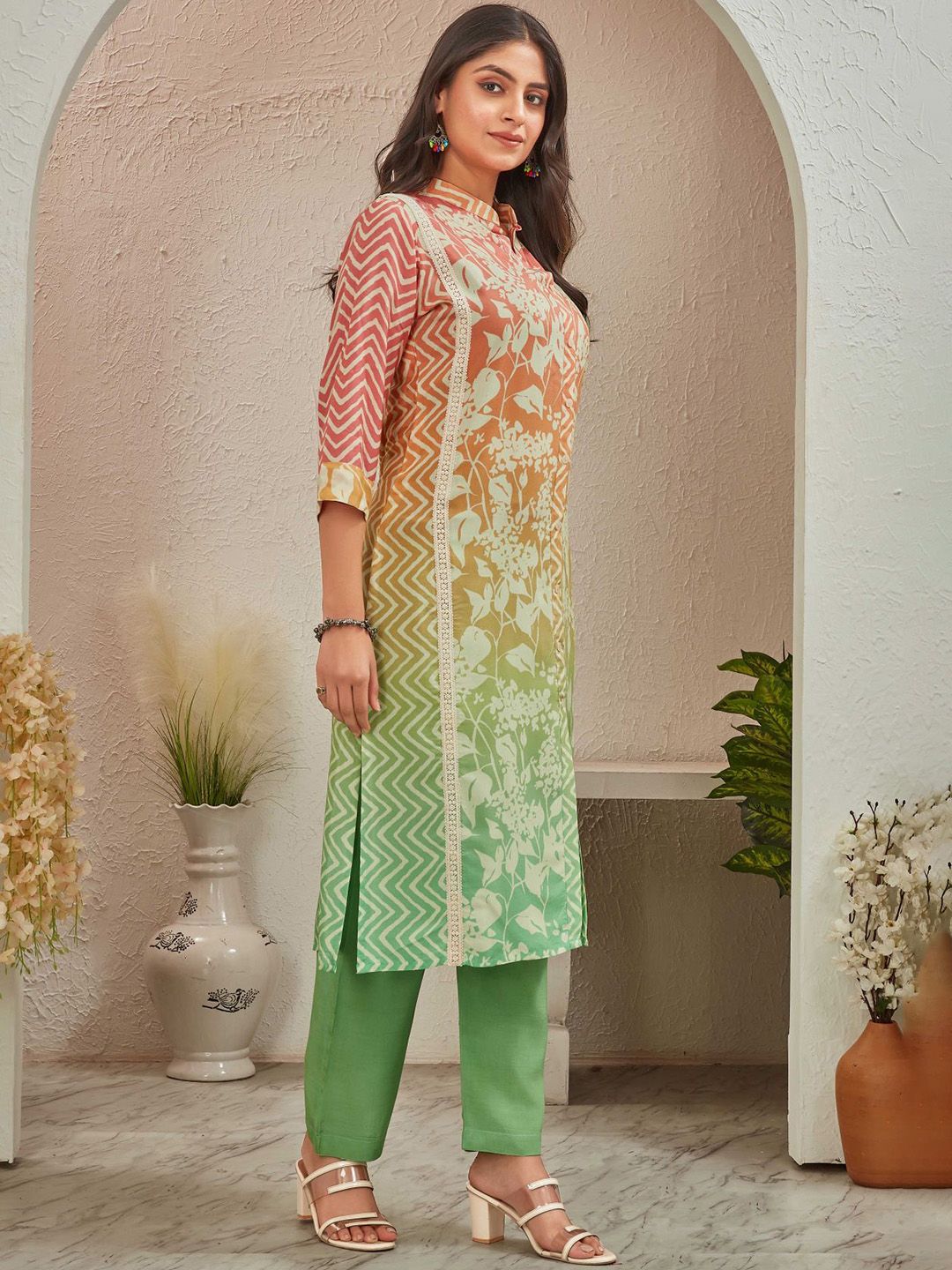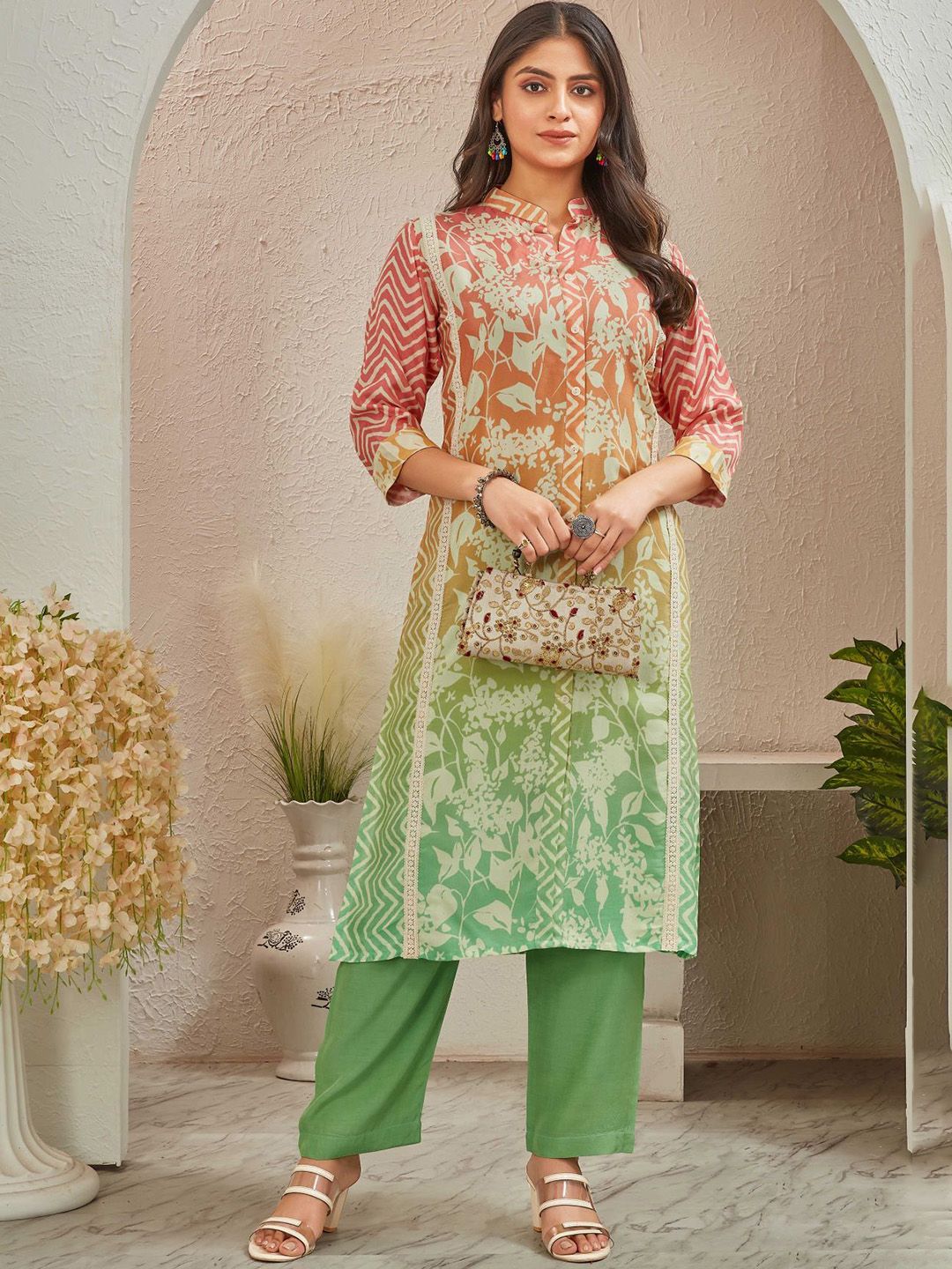 all about you Women Floral Printed Regular Kurta With Trousers