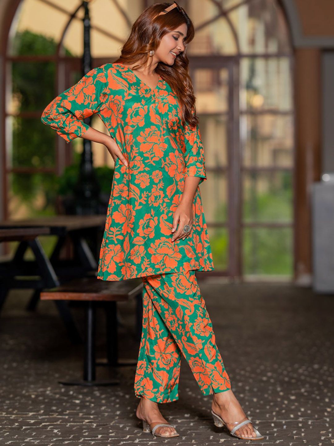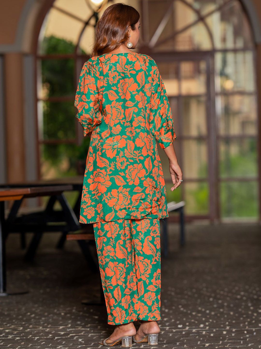 all about you Women Floral Printed Regular Organic Cotton Kurta with Trousers