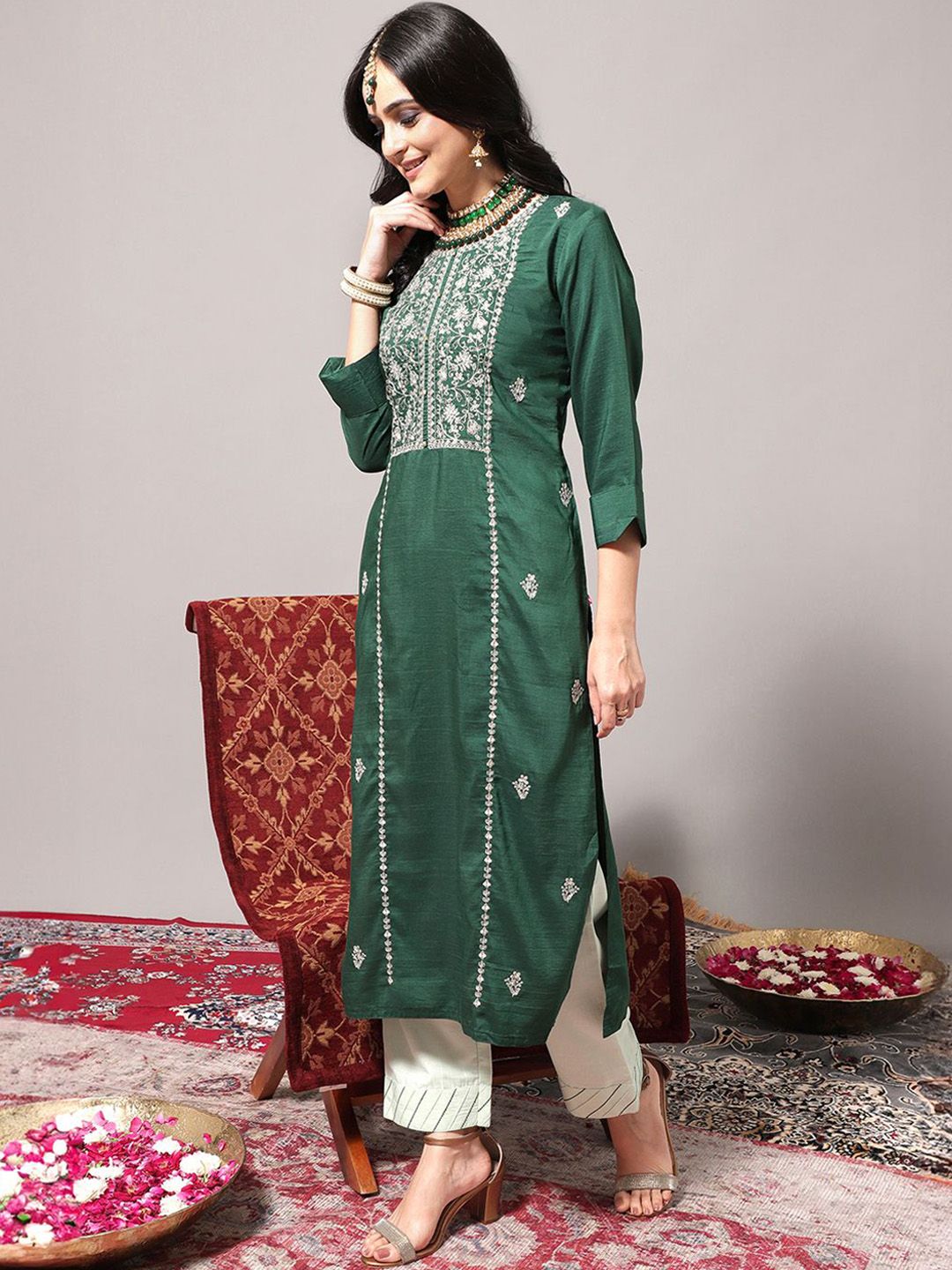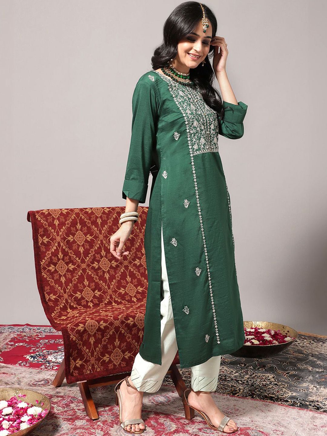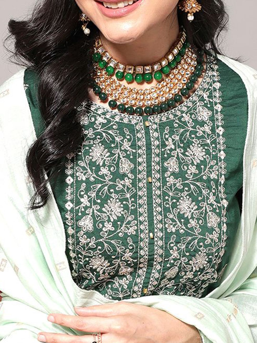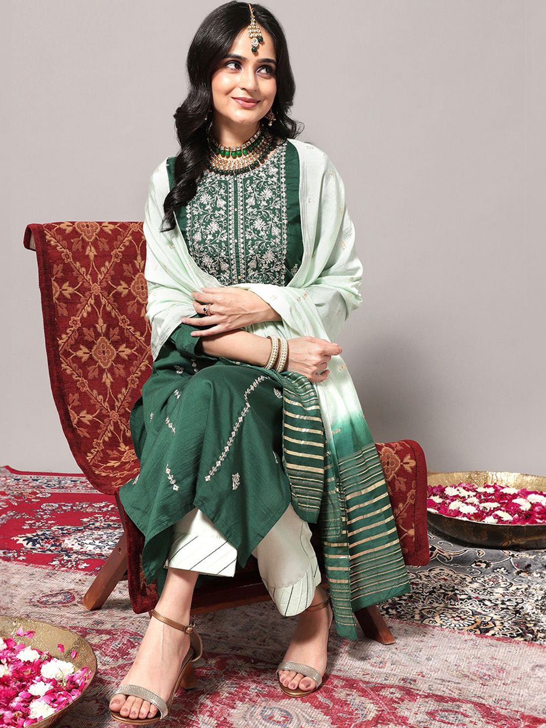 all about you Women Woven Design Embroidered Cotton Kurta with Trousers & Dupatta