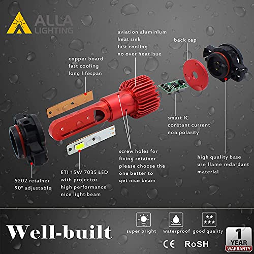 Alla Lighting 5200lm AL-R 2504 PSX24W LED Yellow Fog Lights Bulbs Xtreme Super Bright 2504 PSX24W LED Bulb 12V LED 2504 PSX24W1 Bulb Upgrade for Cars, Trucks w/ 12276 2504 Fog Light