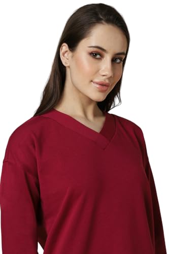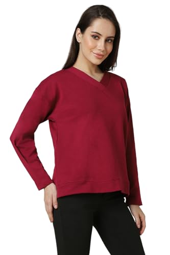 Allen Solly Women Cotton Blend V-Neck Sweatshirt