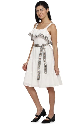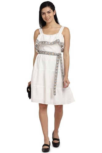 Allen Solly Women's Fit and Flare Cotton Blend Asymmetrical Knee-Length Dress