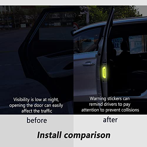 ??Safety Warning:This sticker on your door can let the rear of the vehicle notice that you are opening the door, acting as a safety warning. It is particularly important to improve vehicle identification capabilities and actively reduce accidents, especially for vehicles that park at intersections, turns and roadside. ??High Reflective: Our OPEN stickers are made of high quality PET material. The all-prism design makes it highly reflective, like a "luminous body". It can reflect light close to 180 degrees and emit a strong reflection effect, which greatly improves the safety when going out at night. ??Self-adhesive: The self-adhesive design can stick to your car body firmly and won't cause any damage to the car paint when you take it off. We recommend that you determine where you want to stick before sticking, then clean and dry the area. Gently press it down and stick it in one go without moving it repeatedly. ??Universal Size: Includes four 3.74 x 1 inch car stickers, a universal mini size for any car. This reflective sticker is perfect for doors and trunks and more. It can warn passing cars and pedestrians when parking and opening doors, making travel safer.