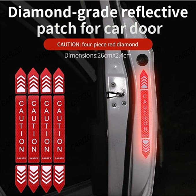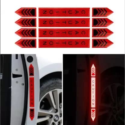 Allure Auto® (Red) 4 Pcs Car-Styling Caution Tap Car Door Stickers Warning Mark Reflective Tape Sign Safety Reflective Strip Light Auto Accessories Compatible with M-otors Classic