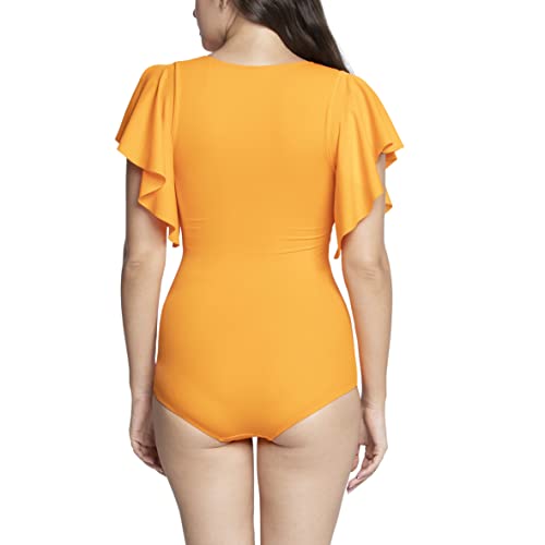 Amante Solid V-Neck Ruffled Sleeves Padded One-Piece Swimsuit