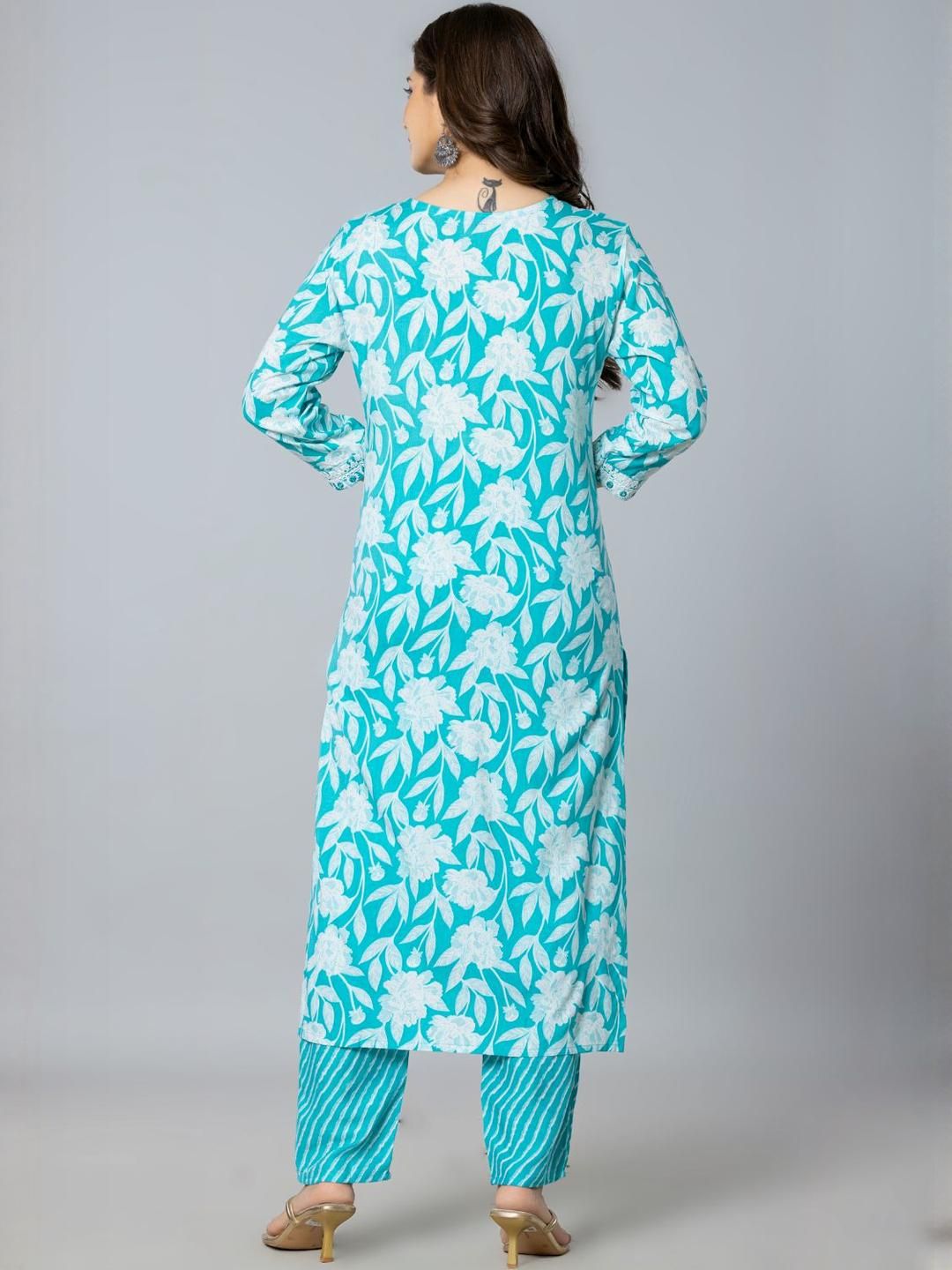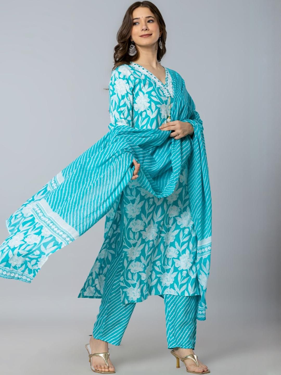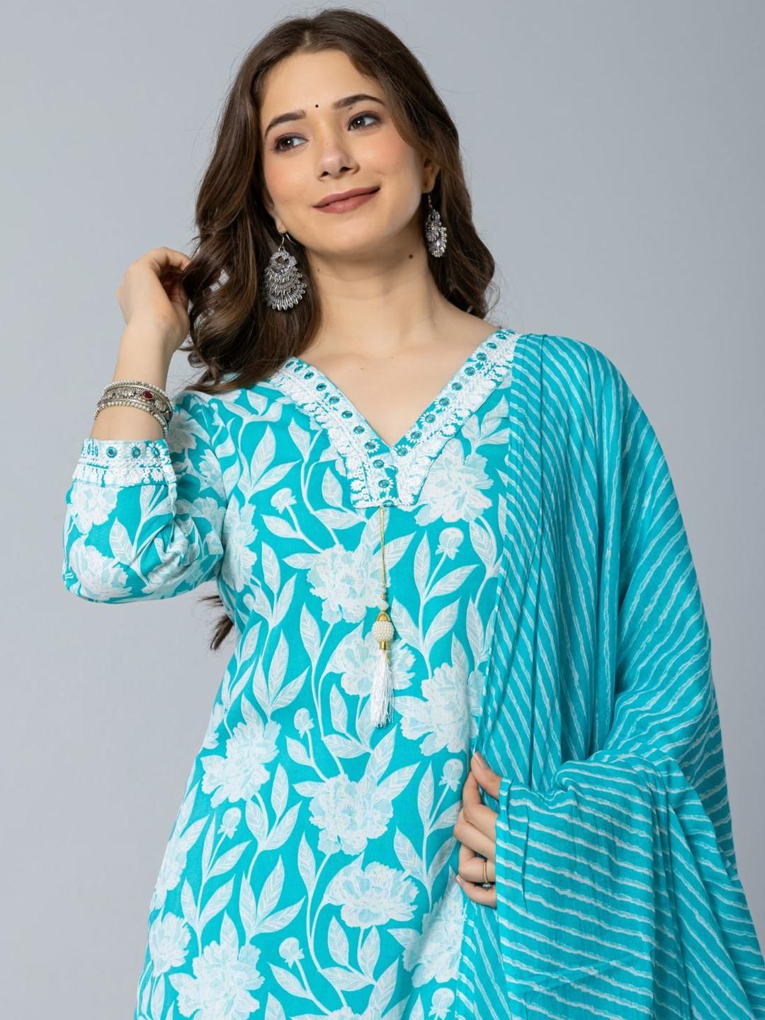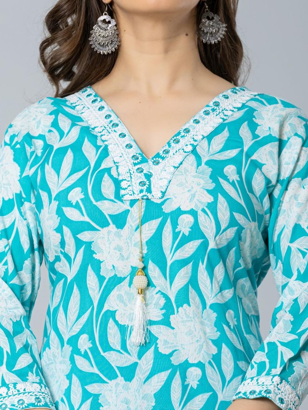 Amayra Women Turquoise Blue Pure Cotton Kurta Sets