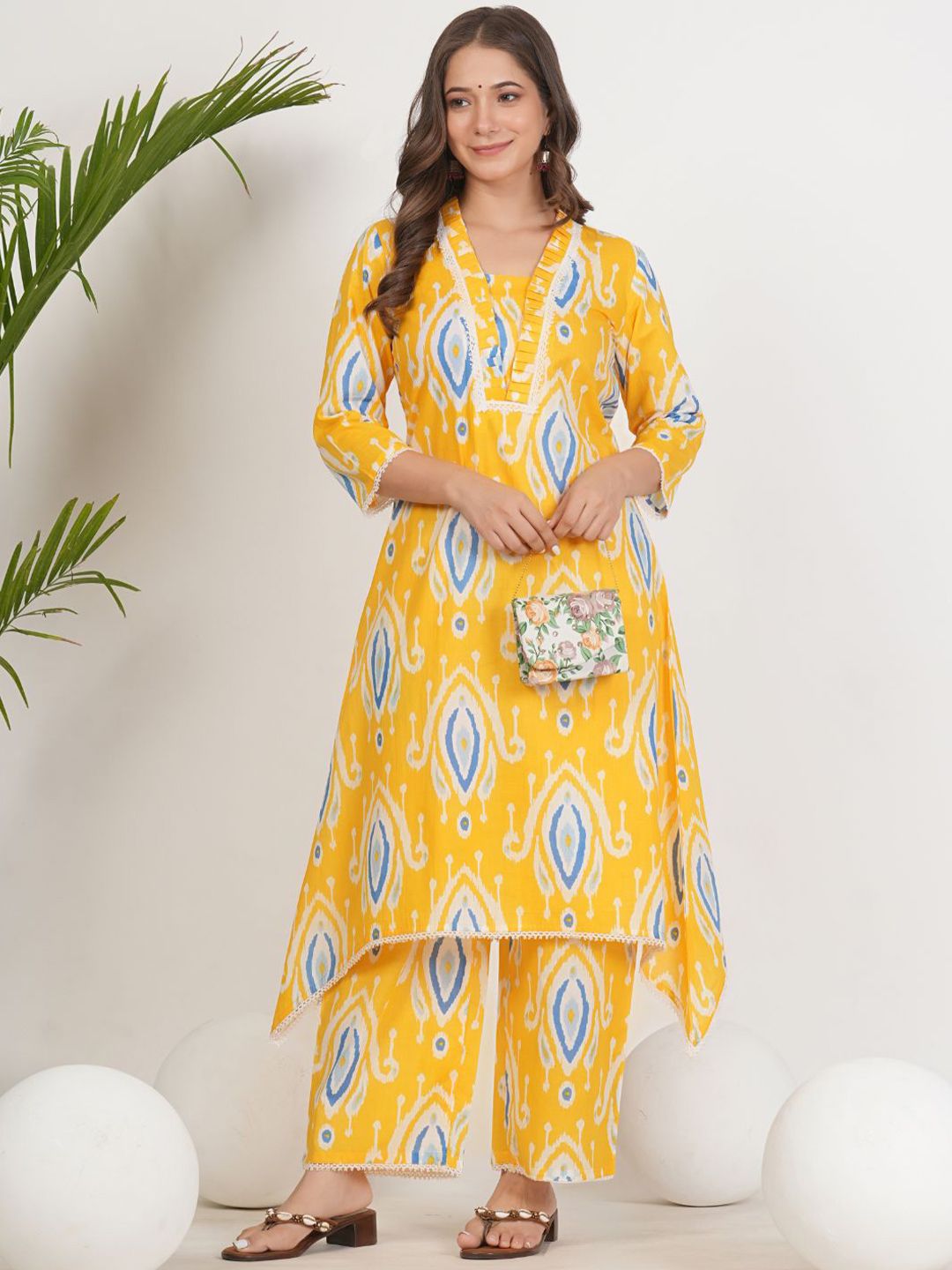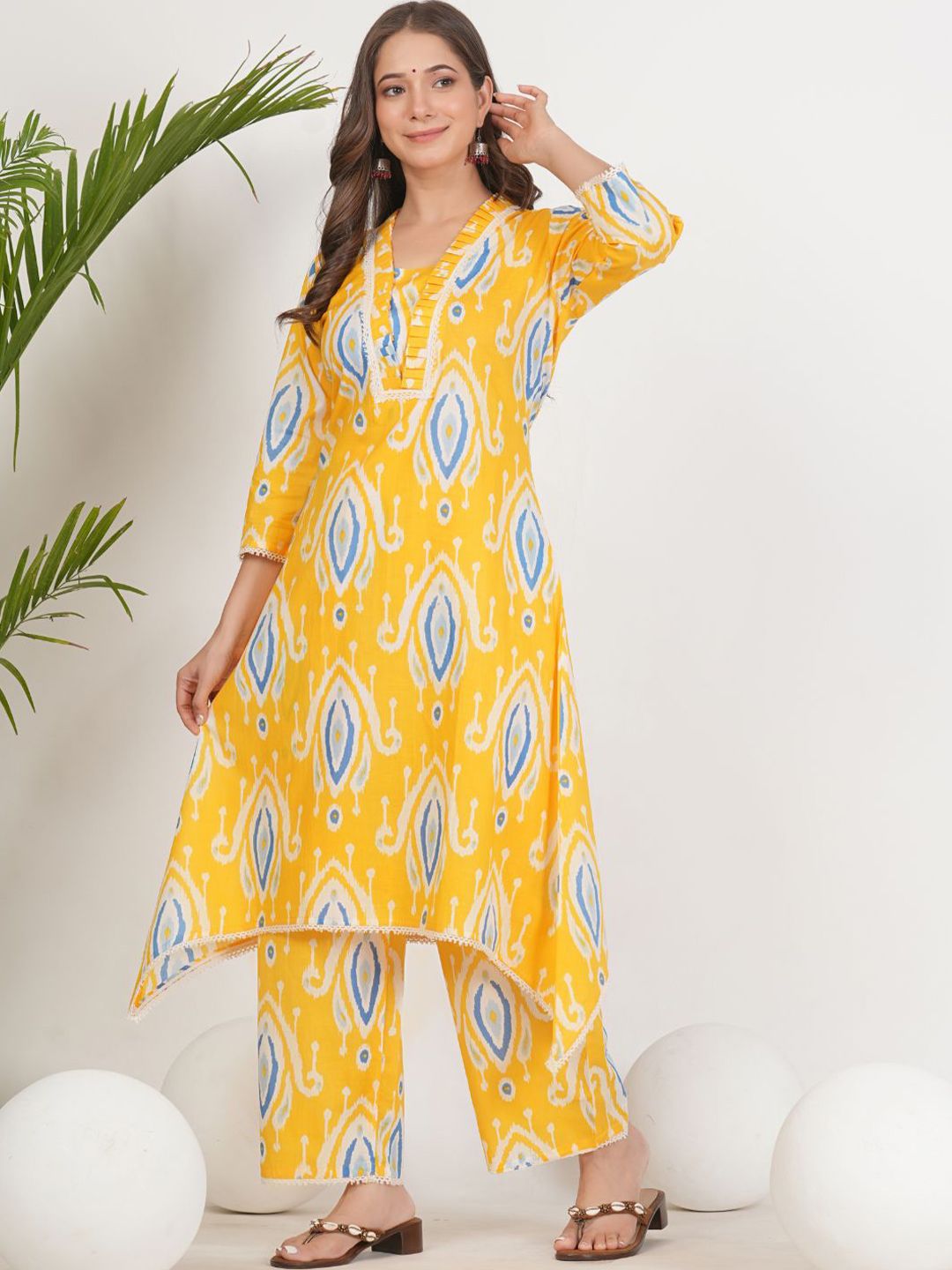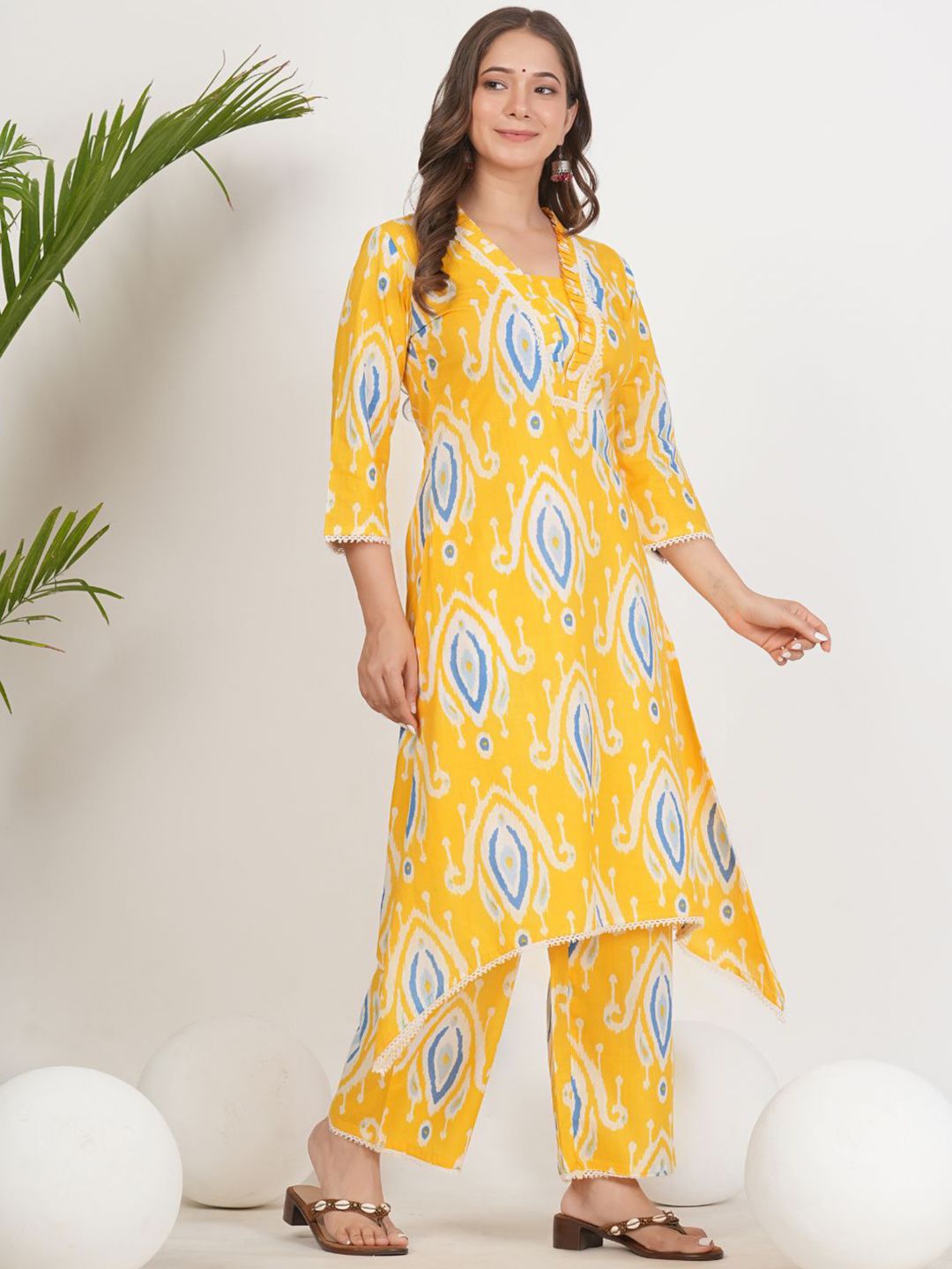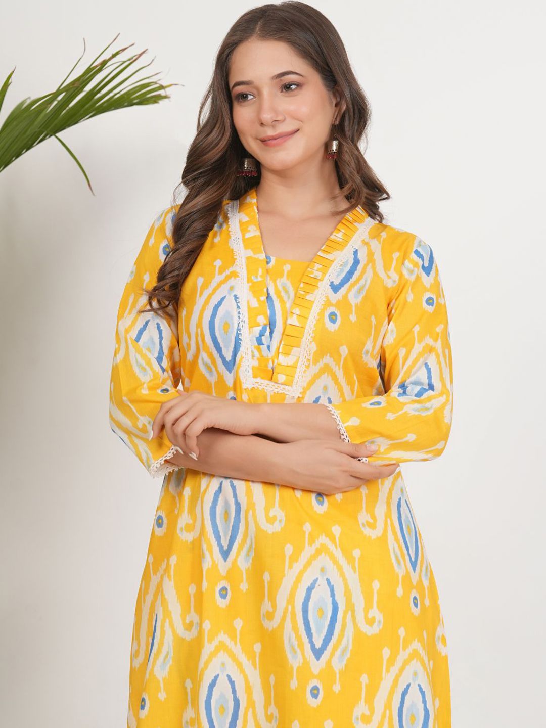 Amayra Women Yellow Pure Cotton Kurta Sets