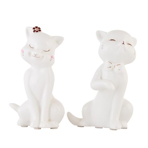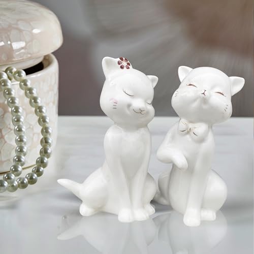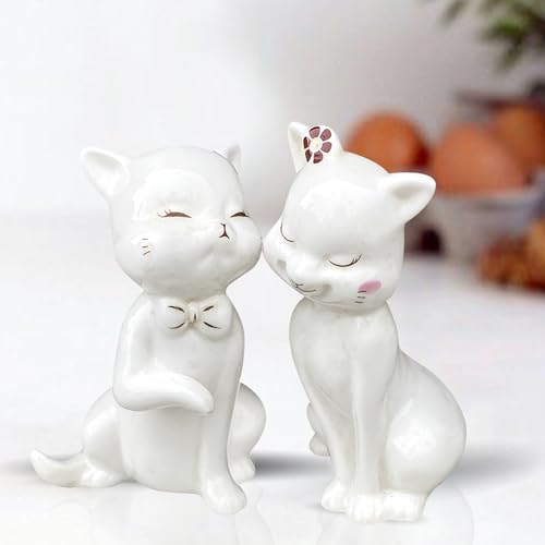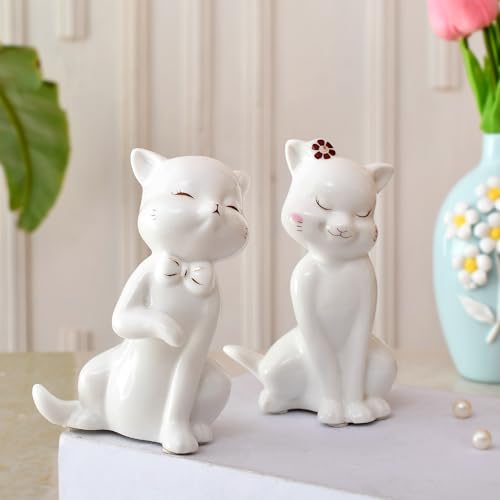 Amazon Basics Exceptional Precision Cat Love Couple Figurine for Home Décor | Office and Kitchen Décor | Spreads Positive Vibes - Pack of 2, White