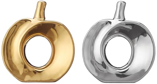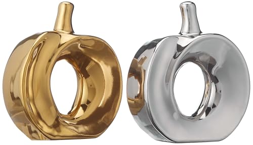 Amazon Basics Lavish Golden and Silver Apple Ceramic Home Decor Showpiece (Pack of 2,Golden & Silver)