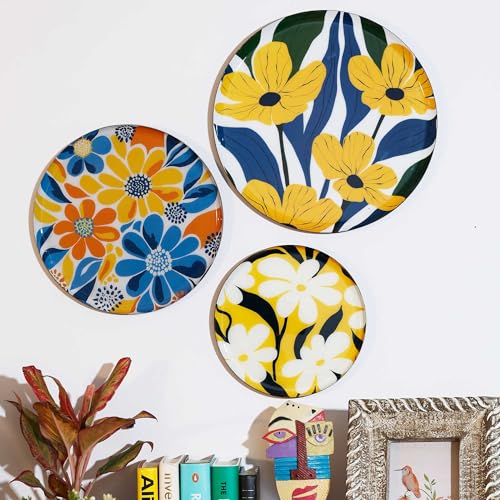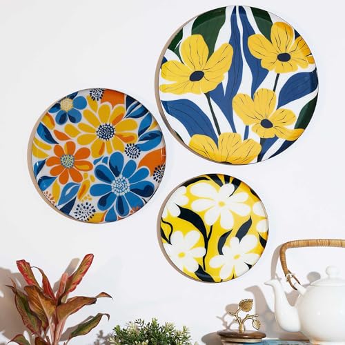 Amazon Basics Metal Decorative Wall Plates | Home Decoration | Vivid Floral Art Design | Living Room Wall Decoration | Décor Items | Gift Items (Multicolour) (Set of 3)