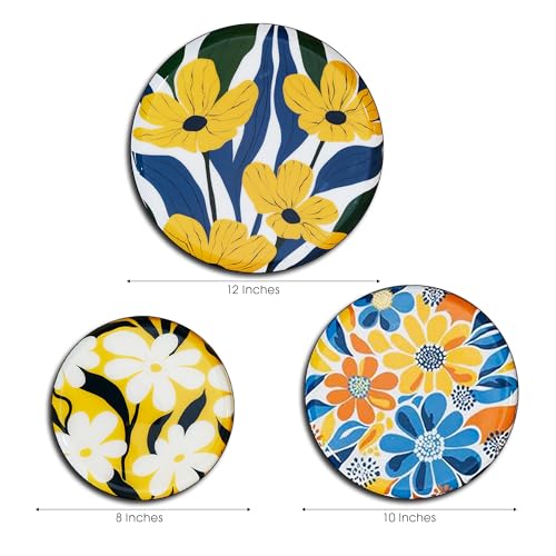 Durable Material: Crafted from high-quality mild steel, these plates are built for long-lasting durability and sturdiness. Enamel and Powder Coating: The plates are powder-coated on both sides and then the front is coated in an enamel finish to enhance the aesthetic of the plates and protect them from rust and everyday wear. Easy to Install: The set is lightweight to make installation easy, making your rooms beautiful with hassle-free wall decoration. Handcrafted Wall Décor: Well-designed these plates are perfectly handcrafted and made beautifully to elevate the aesthetic of any room. Varying Sizes: The set includes 3 plates of different sizes to give you an eye-catching wall décor that is perfect for your home or as a gift. Ideal for Every Room: This set is perfect for decorating living rooms, bedrooms, hallways, or office spaces, complementing any interior design. Dimensions: 1 Plate: 12 Inches 1 Plate: 10 Inches 1 Plate: 8 Inches
