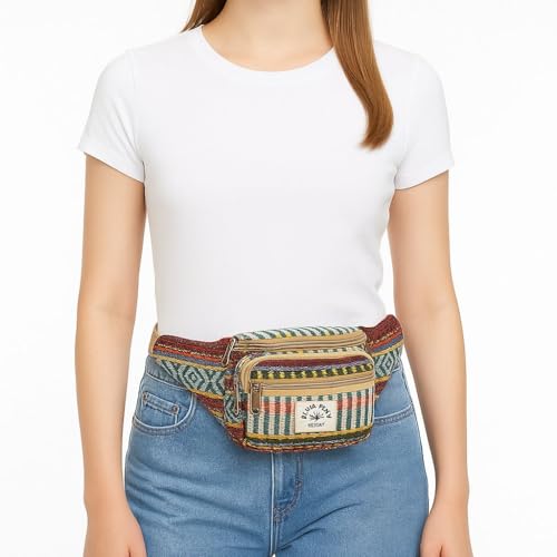 ANESHA Hiking Hemp Waist Pouch Unisex Belt Bag for Trekking Essentials Everyday Carry Hemp Belt Bag for Men Essential Hip Pack