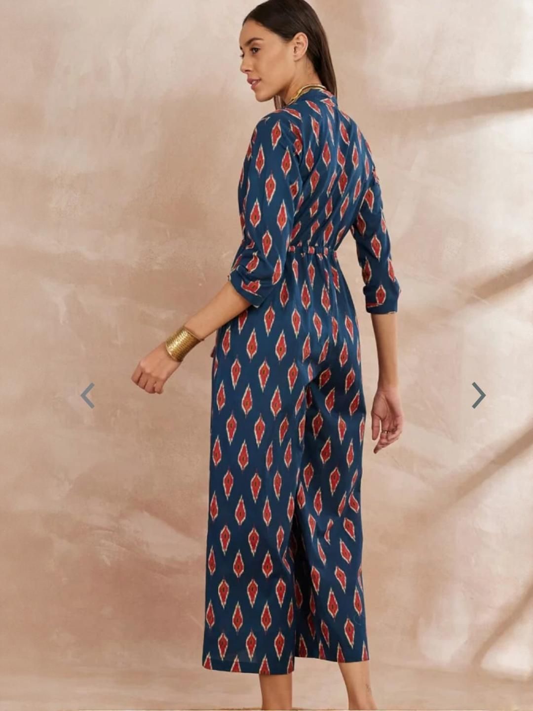 ANGIYA Women Blue Cotton Printed Long Sleeves Jumpsuit