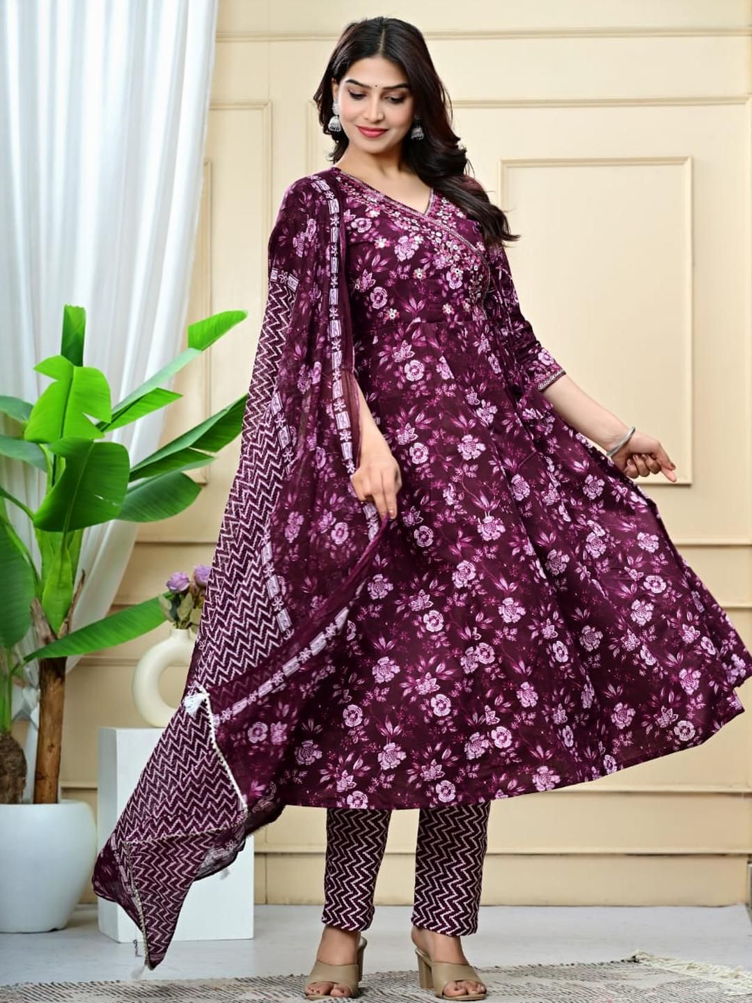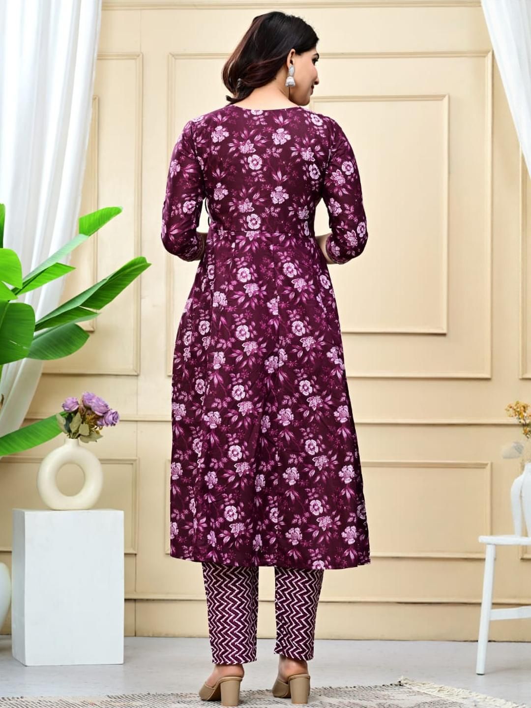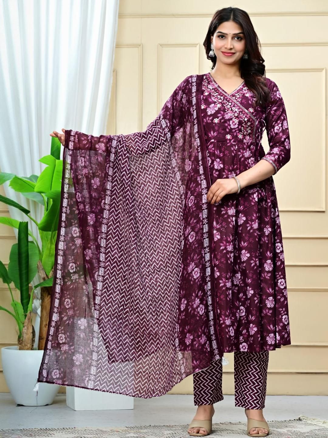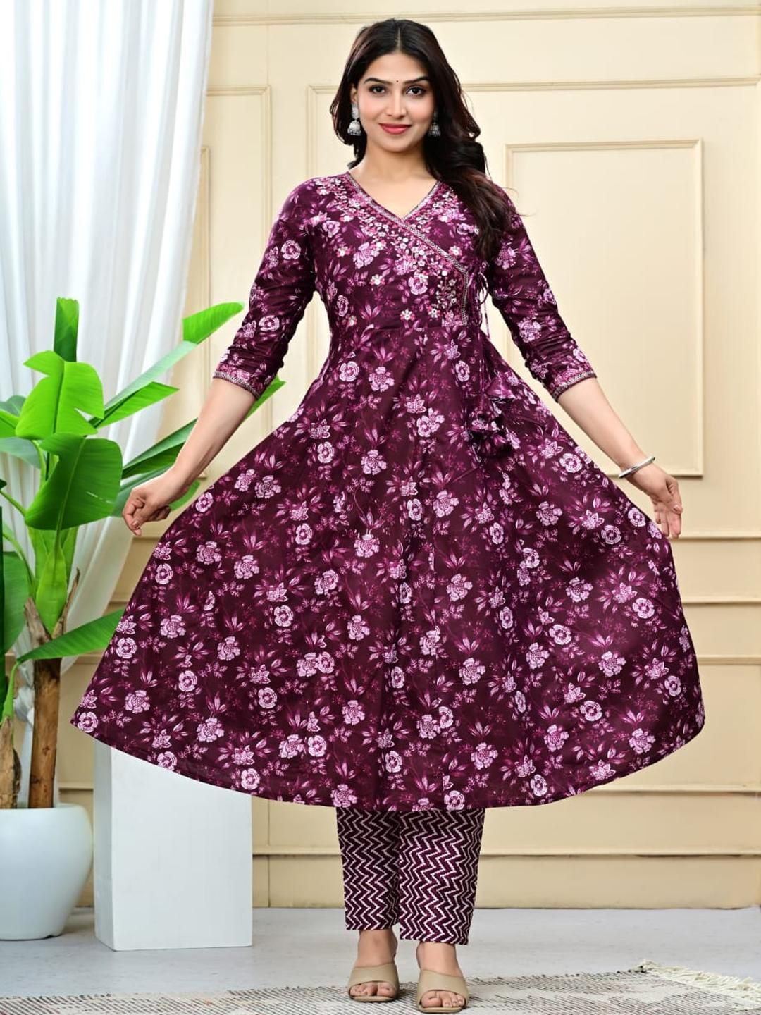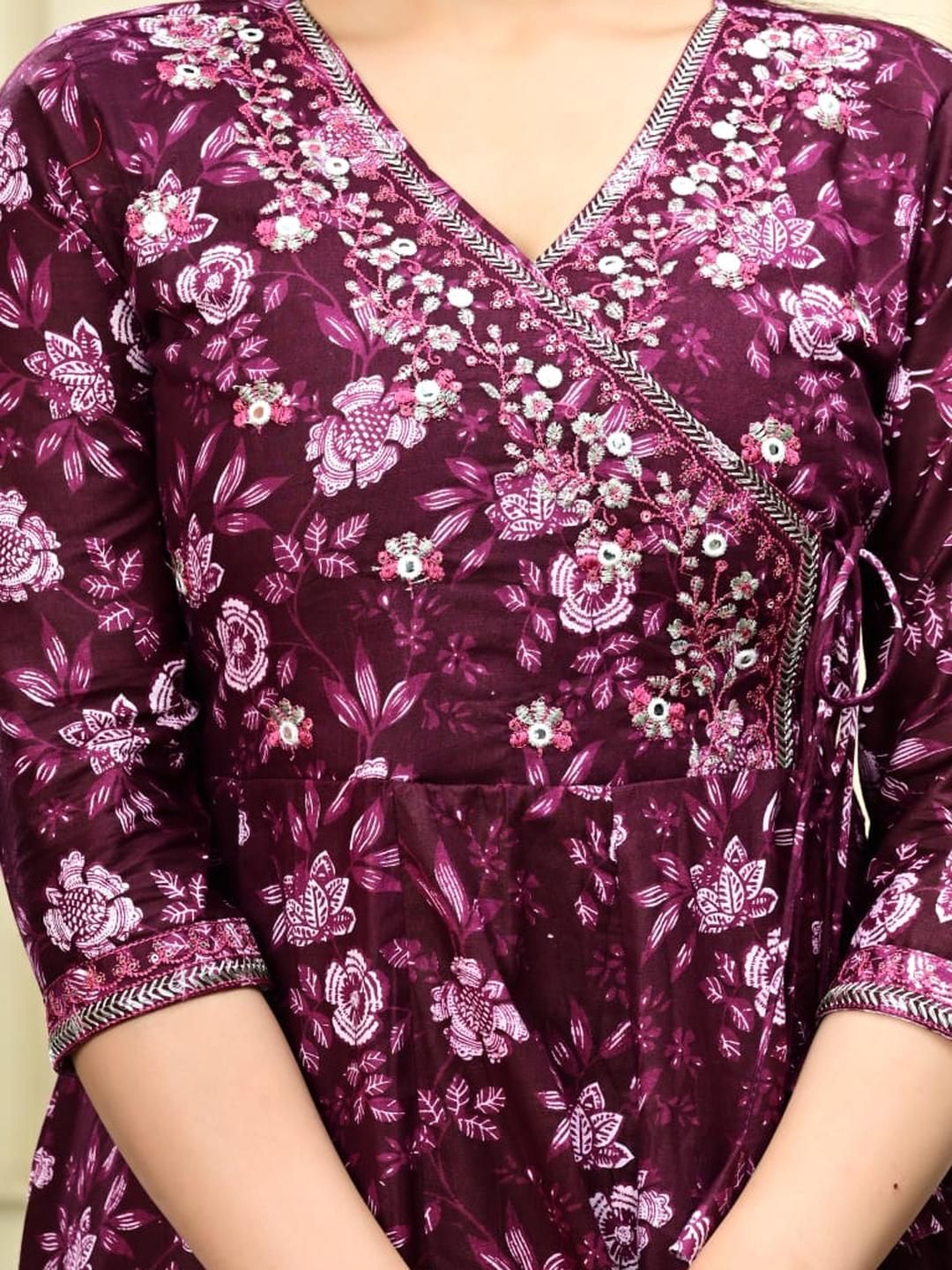 Angkor Women Printed Embroidered Work Angrakha Kurta Set