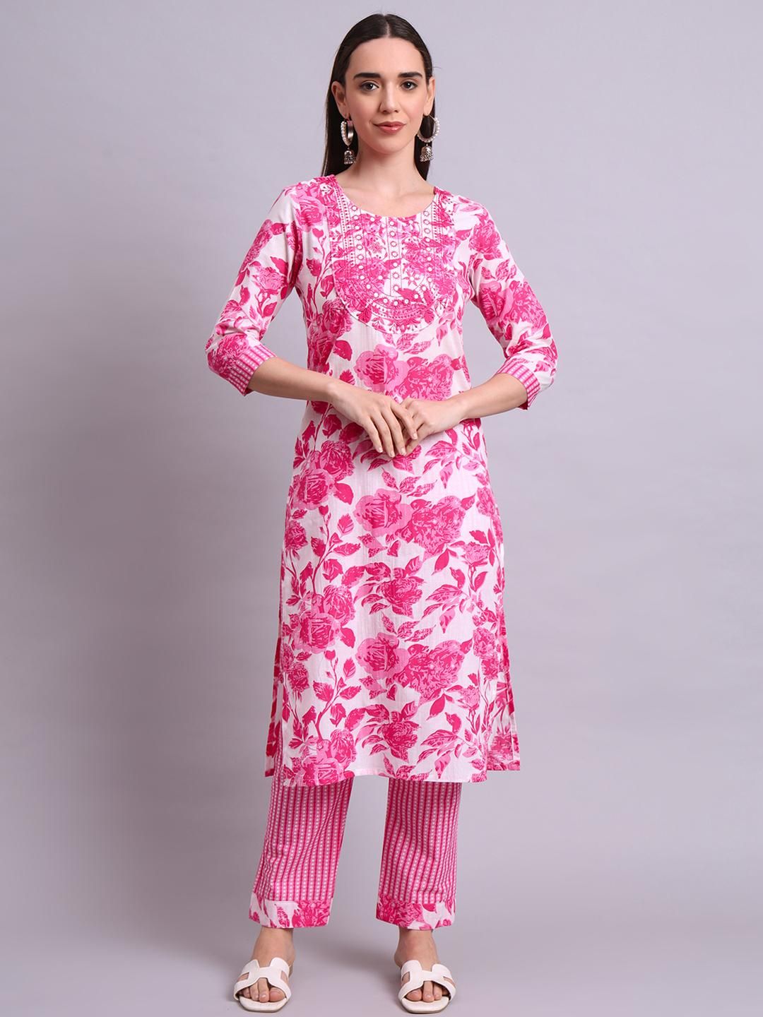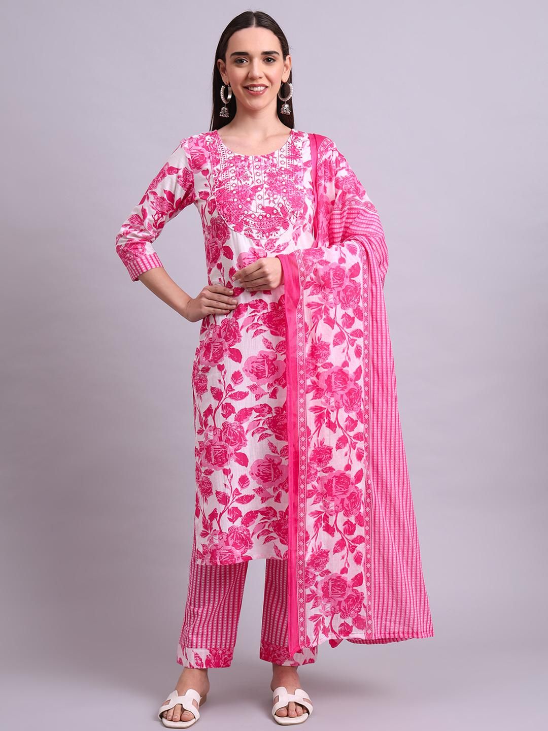Buy this stylish Angkor Women Pink Floral Printed Pure Cotton Kurta with Trousers & With Dupatta at Marincart Nepal. This product offers great quality and value. Perfect for those looking for the latest trends in fashion. Get yours now at unbeatable prices.