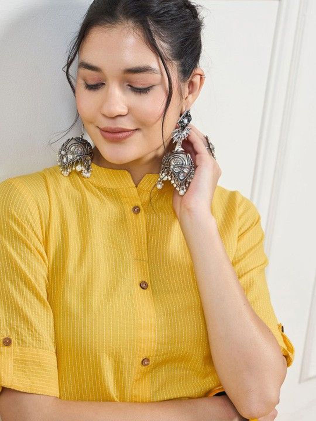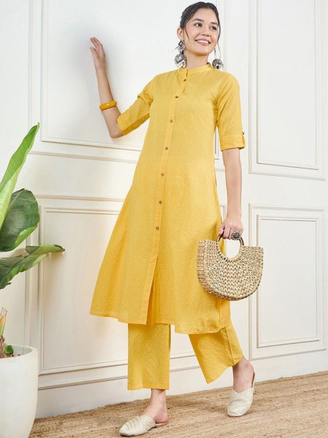 Angvarnika Women Striped Cotton Kurta with Trousers