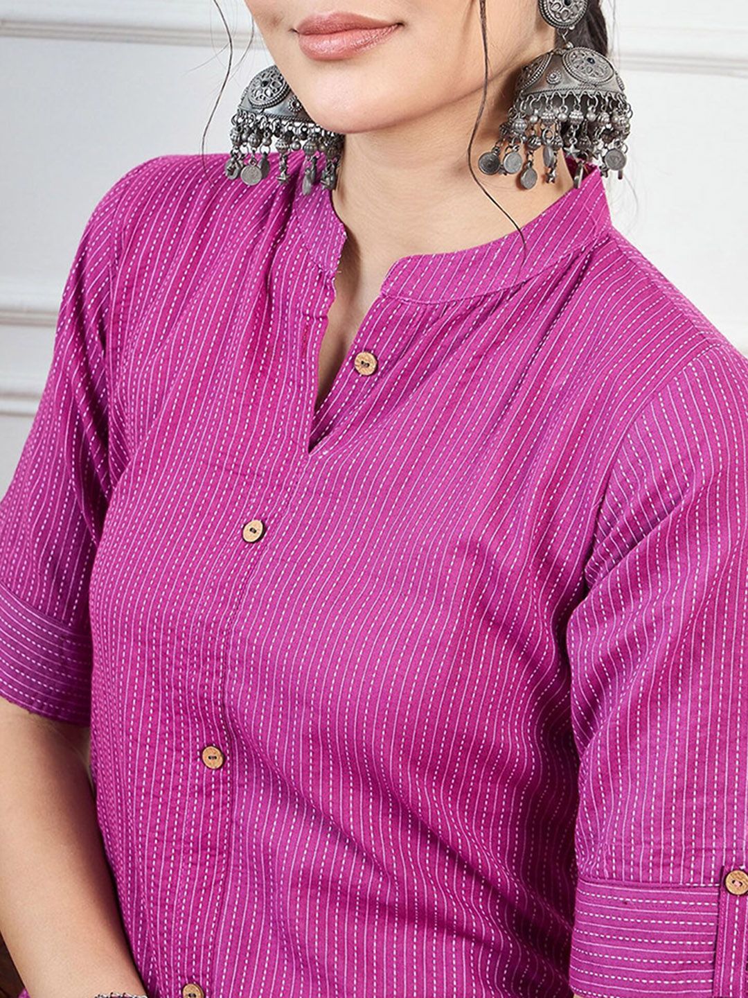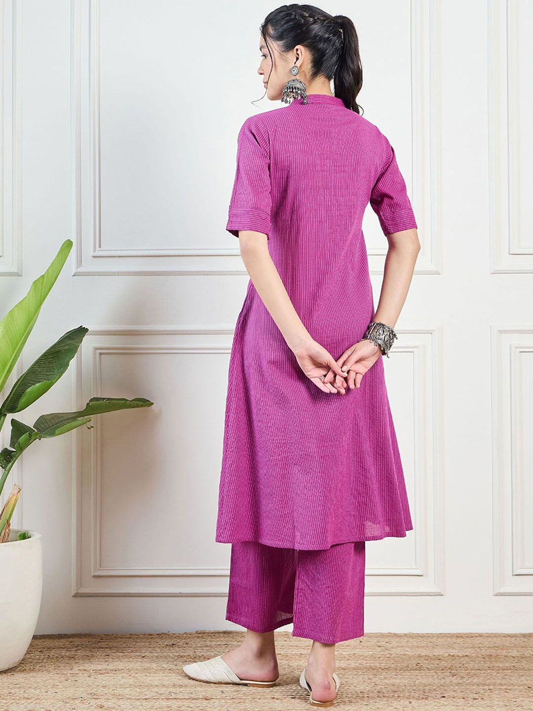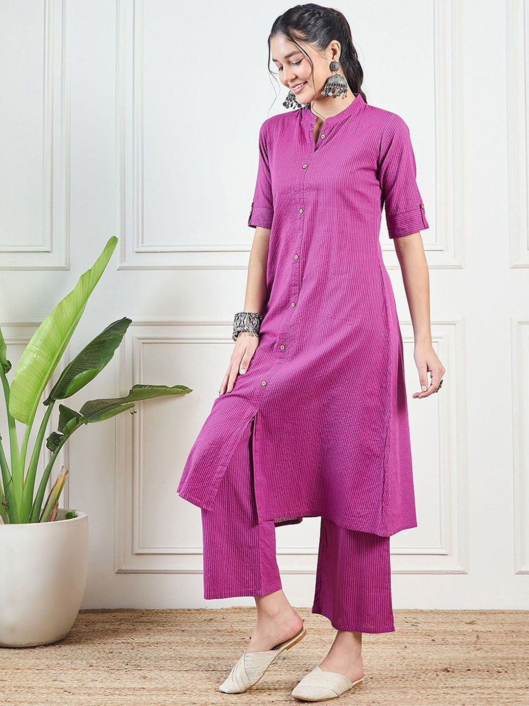 Angvarnika Women Striped Regular Pure Cotton Kurta with Trousers