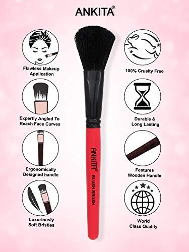 Ankita Blusher Brush for Face Makeup with Wooden Handle|Natural Animal/Syanthetic Hair for Makeup|Easy Blending (Blusher Brush Silver)
