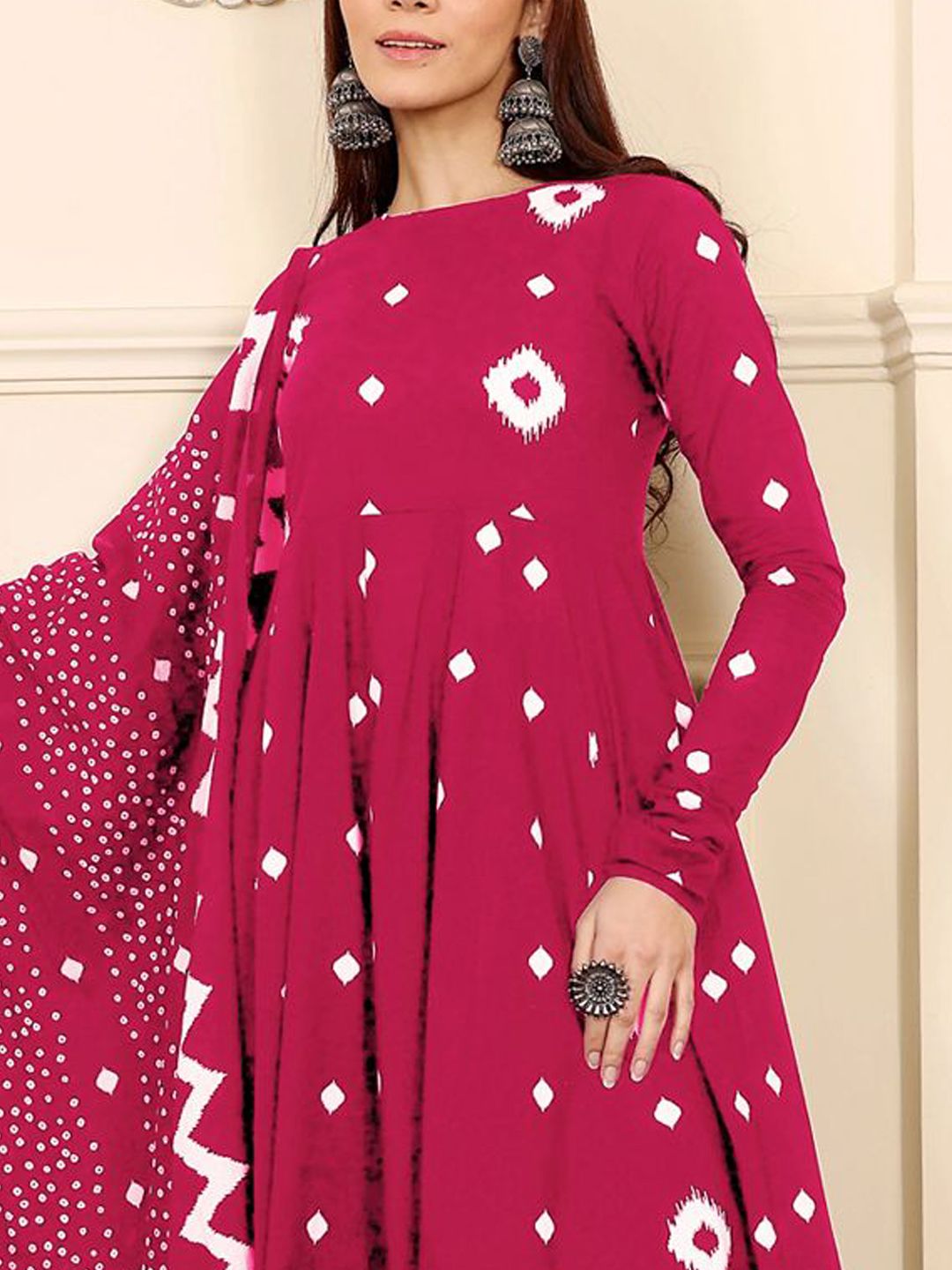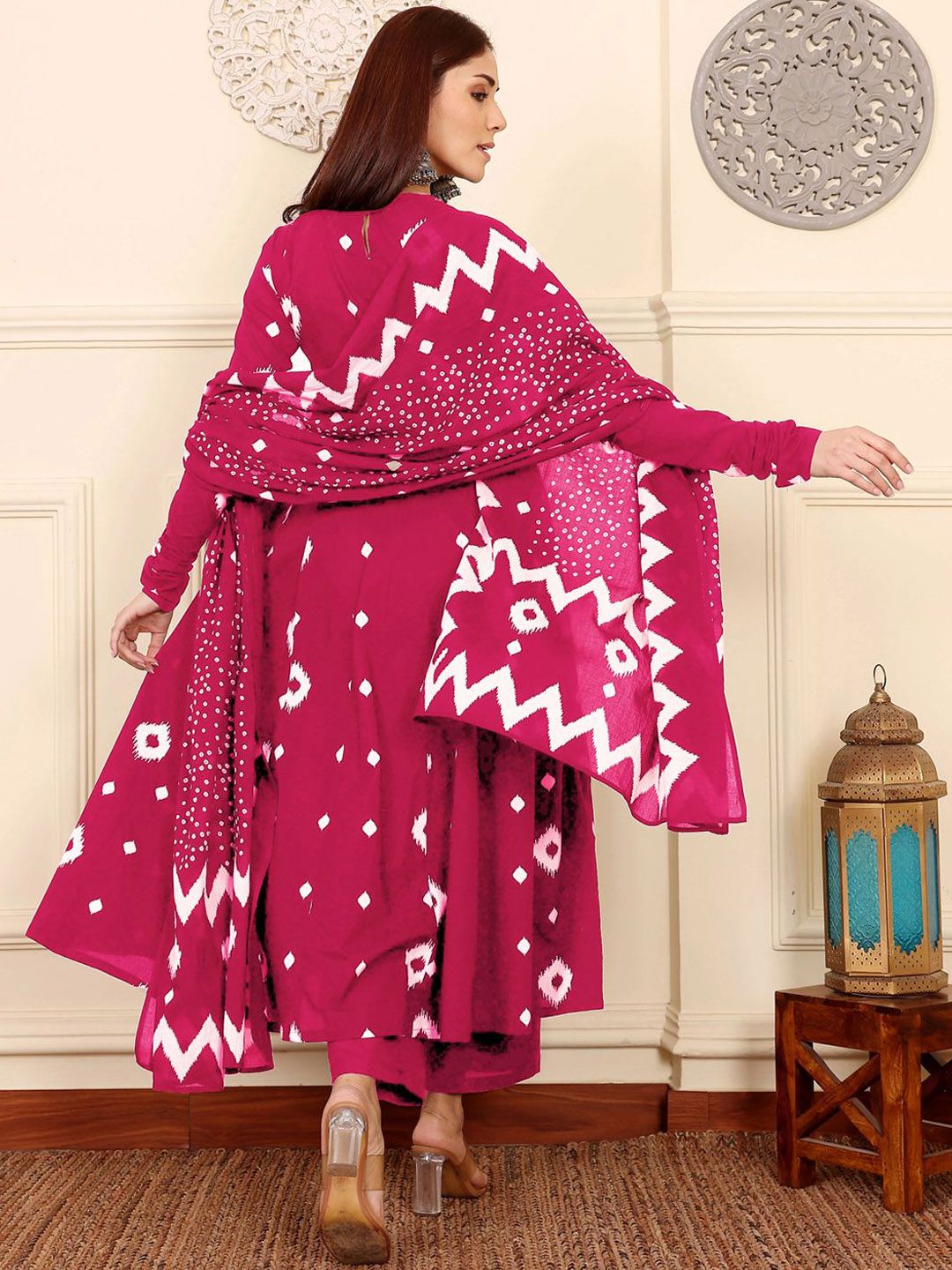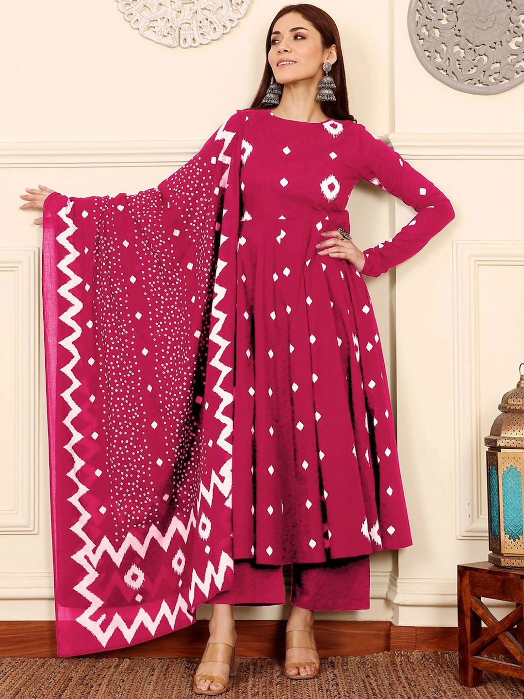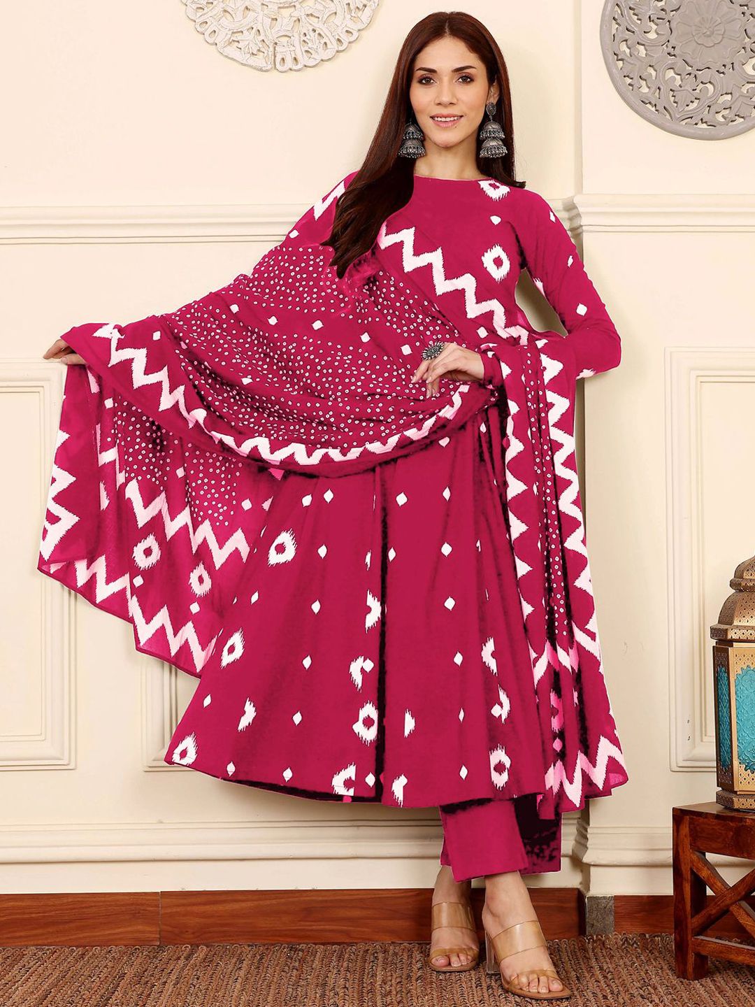 Anni Designer Geometric Printed Regular Anarkali Kurta with Trousers & Dupatta